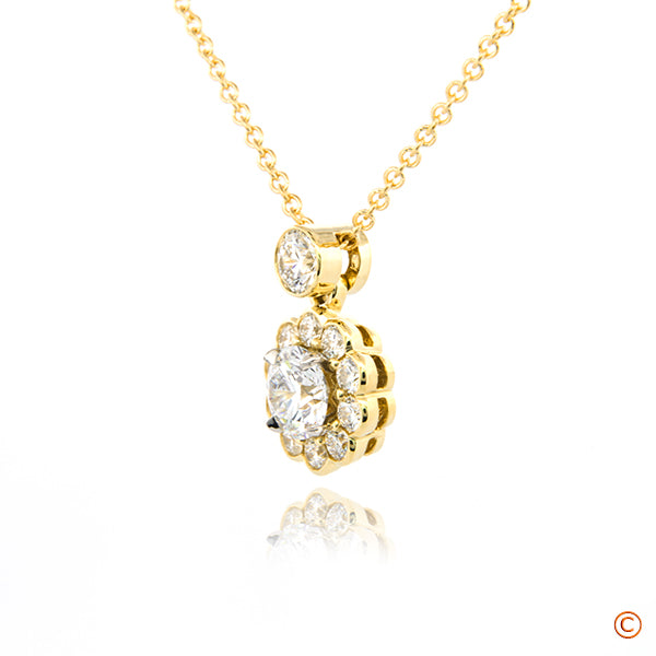 Custom Diamond Flower Inspired Pendant with a Bezel Dangle