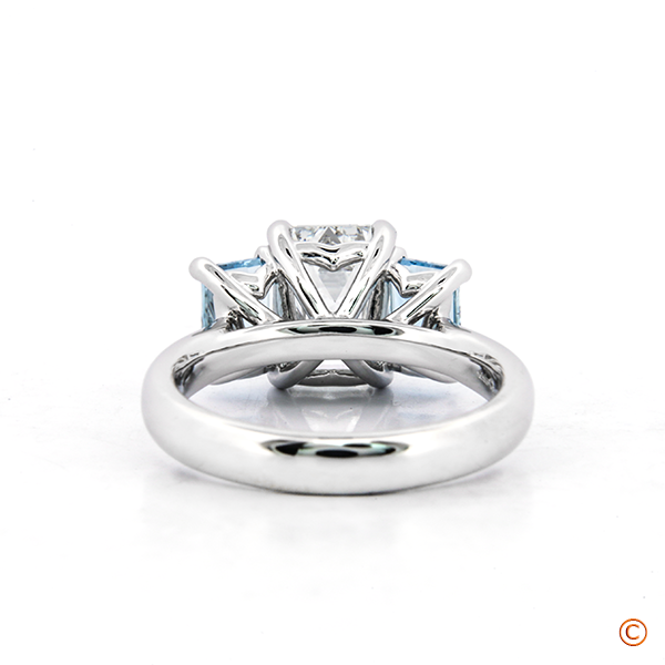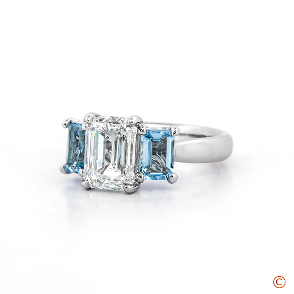 Custom Three stone Emerald Engagement Ring set with Natural Aquamarines