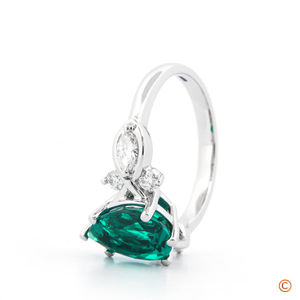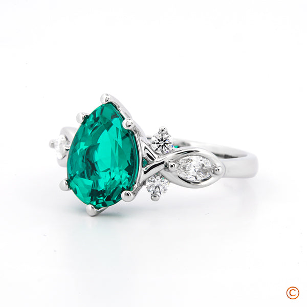 Lab Created Green Emerald set into a Custom Twisted/Wrapped Style Engagement Ring
