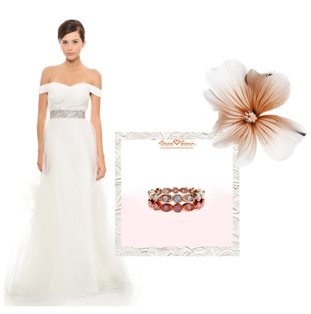 Brides with a simpler style will be happy to hear that tailored dresses with clean lines are one of the most popular trends for Spring 2015. This style doesn't rely on a sea of fabric and lace to add drama, instead, dress designers focus on structure with tiny details, such as petite bow belts, to enhance the bride's natural beauty and lines. Modern minimalist brides can play up this style's subdued elegance by heightening their bridal look with stunning accessories like our intricately designed Denise Wedding Band and adding a floral bouquet in a simple color scheme.