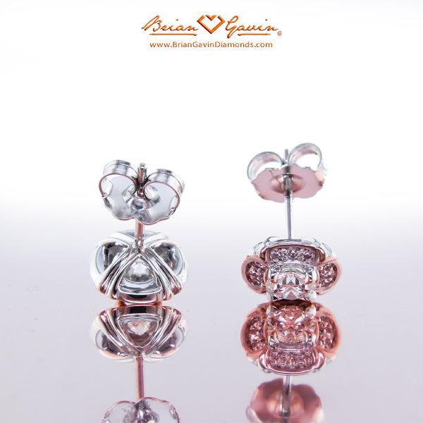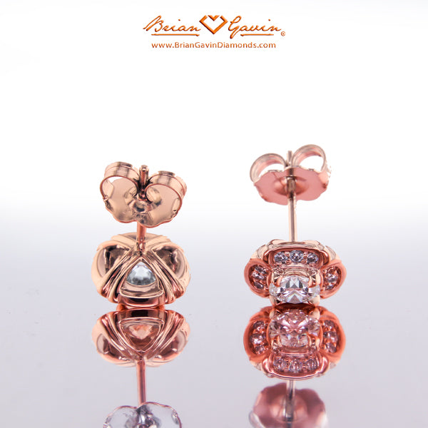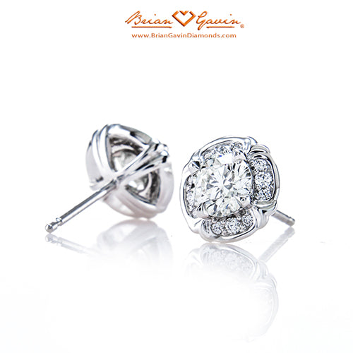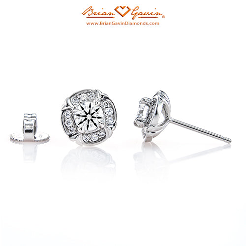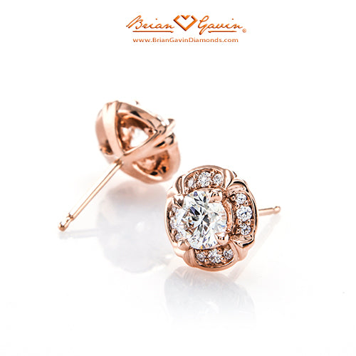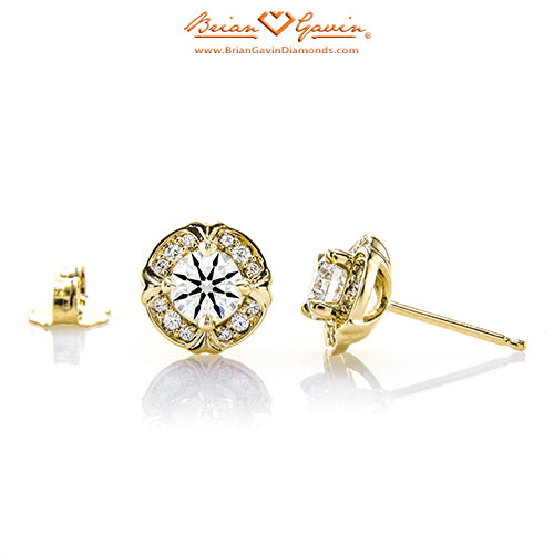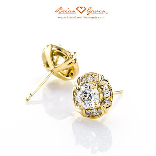 These halo earrings feature 24 F/G VS Brian Gavin Signature melee diamonds (approx 0.20 ctw) and are priced based on 4.00 mm center stones. Please inquire for pricing on larger stones.  Price is for setting only. Select your diamond from our extensive online diamond inventory.