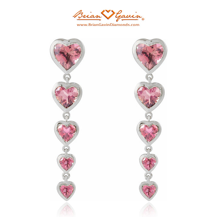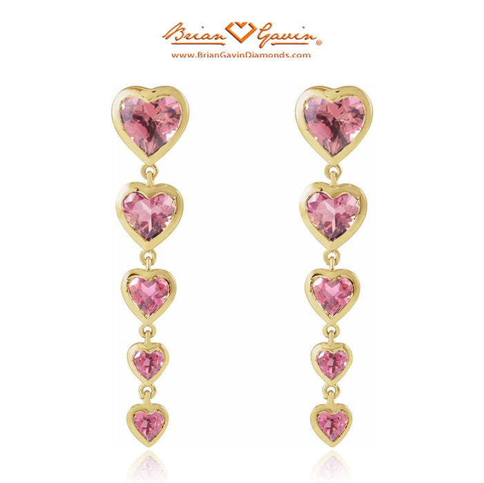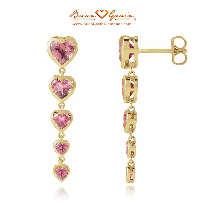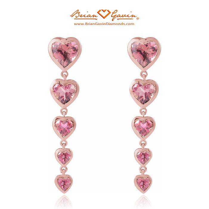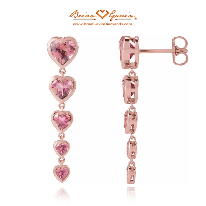 These heart shaped diamond dangle earrings are set with Natural Pink Tourmaline. Earring dimension are 31.7 x 7.0mm. The garnets are approximately 6 x 6mm each. The earrings feature a post and push backs.
