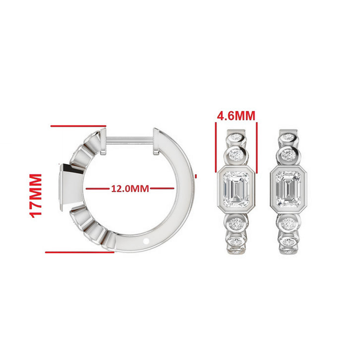 Bezel Set Emerald and Round Shaped Lab Grown Diamond Huggie Hoop Earrings