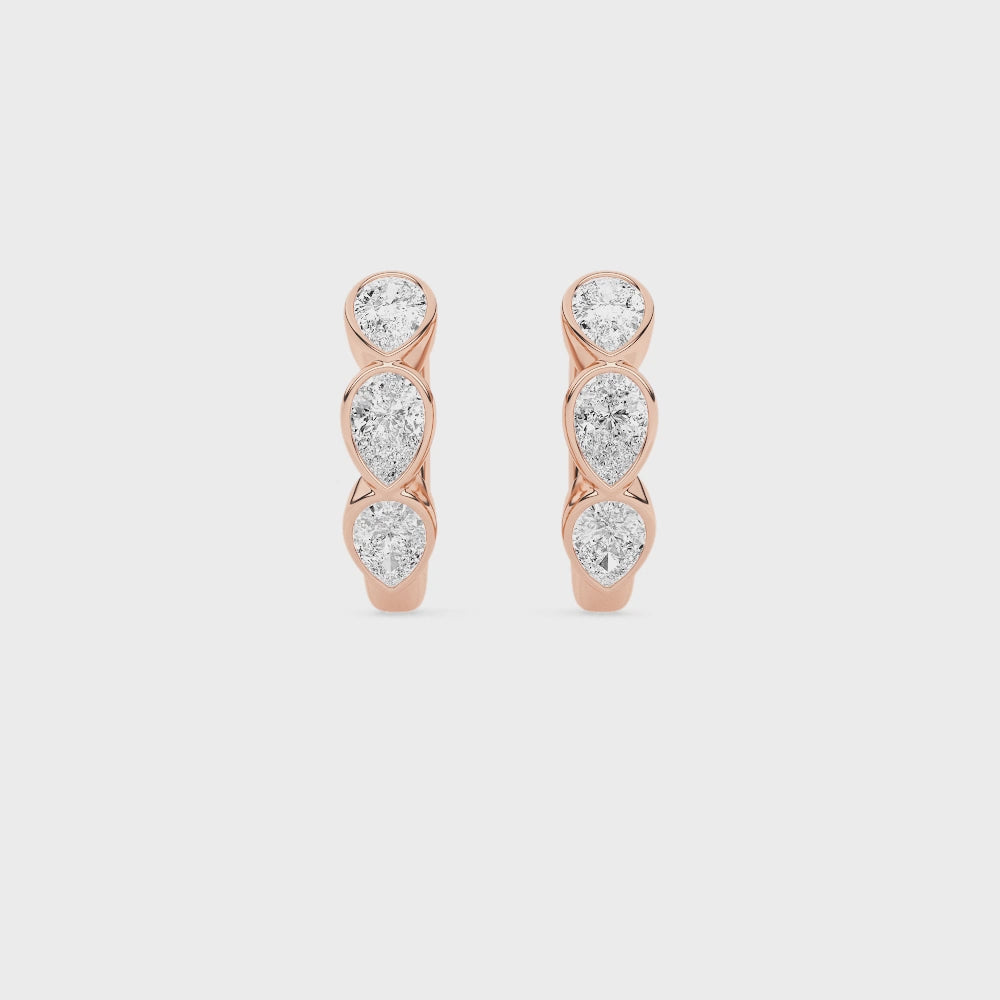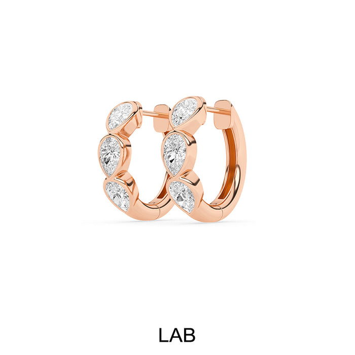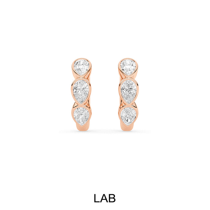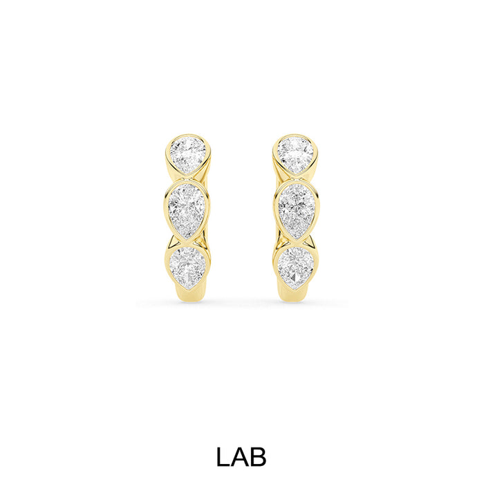 Bezel Set Pear Shaped Lab Grown Diamond Huggie Earrings
