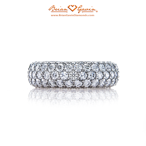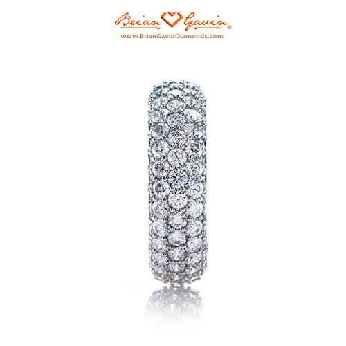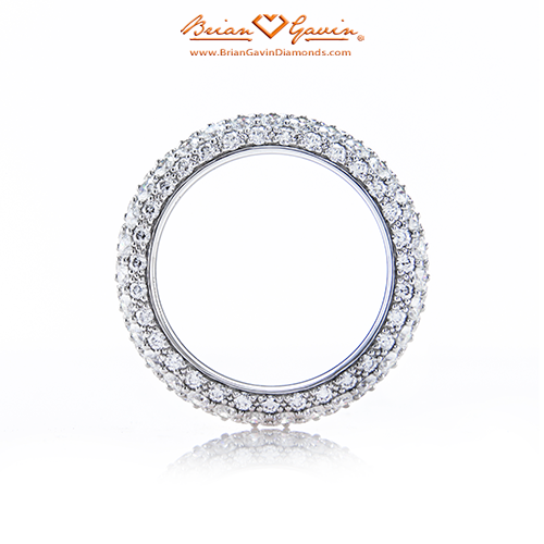Five row diamond FULL eternity band featuring approx 3.50ct of F/G VS Brian Gavin Signature hearts and arrows diamond melee. The price is valid for rings up to size 6. Please call for pricing on other sizes. Only available in platinum. This is a special order and a FINAL SALE and can not be resized.