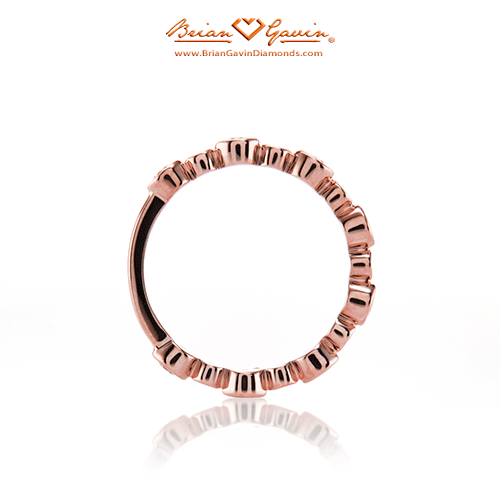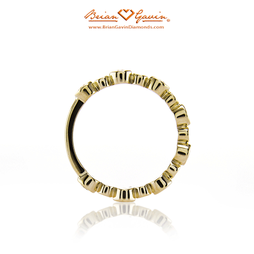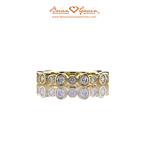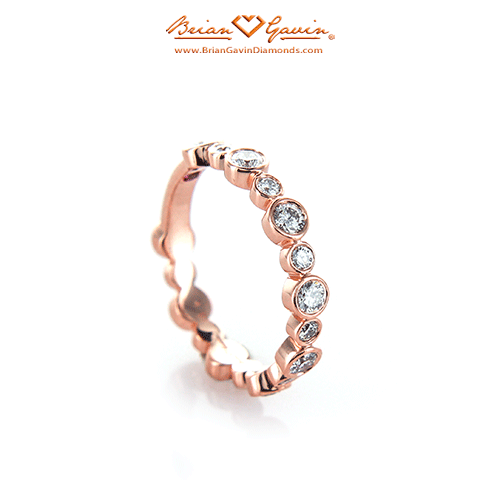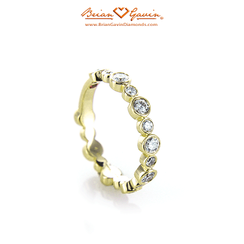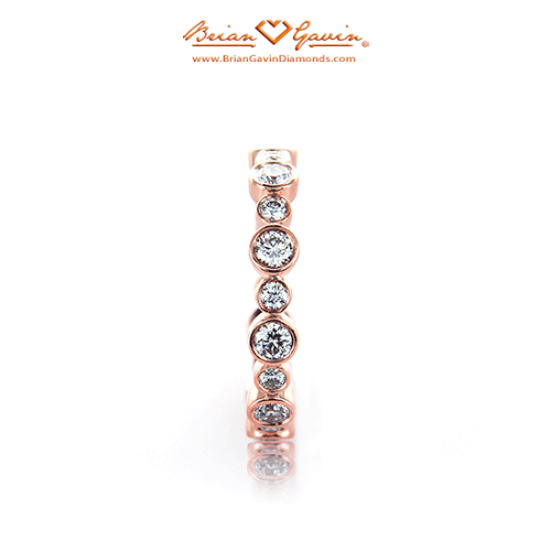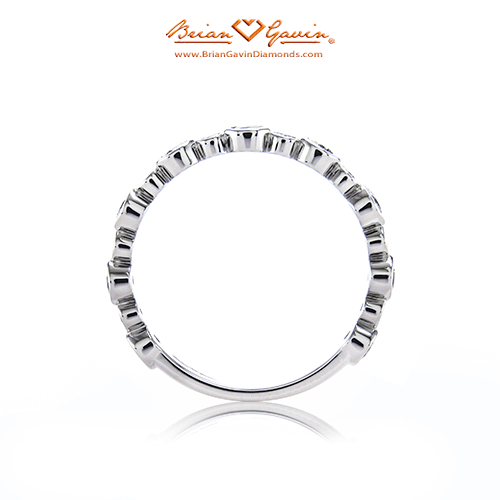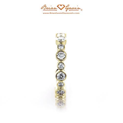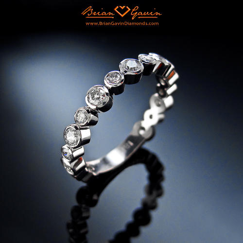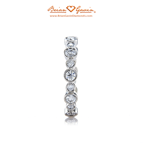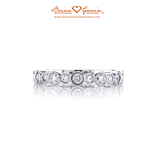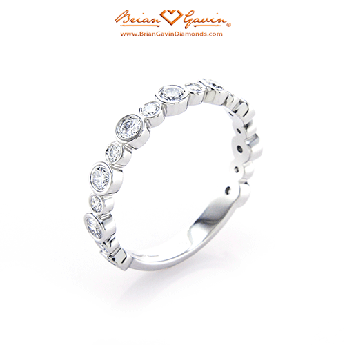 3/4 eternity band with full bezel alternating sized diamond melee. Features 8 x .02 ct and 9 x .05 ct (approx. 0.56 ctw) F/G VS Brian Gavin Signature melee. Request quotes for different size diamond melee. Each band is made to order and is a FINAL SALE.