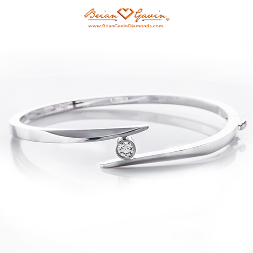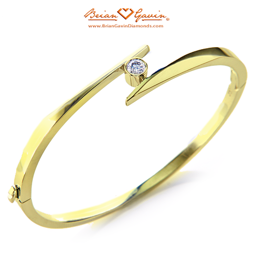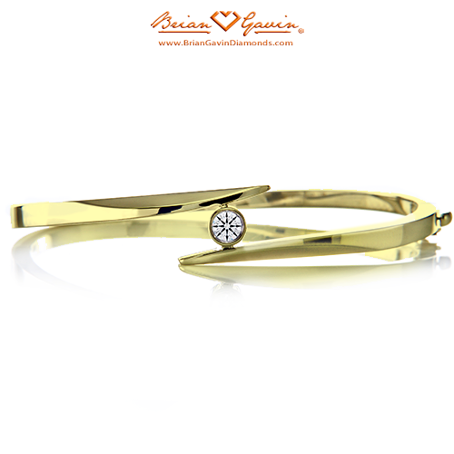 This beautiful tension style bangle comes in 14k Gold and is set with a 0.25ct G VS round diamond.