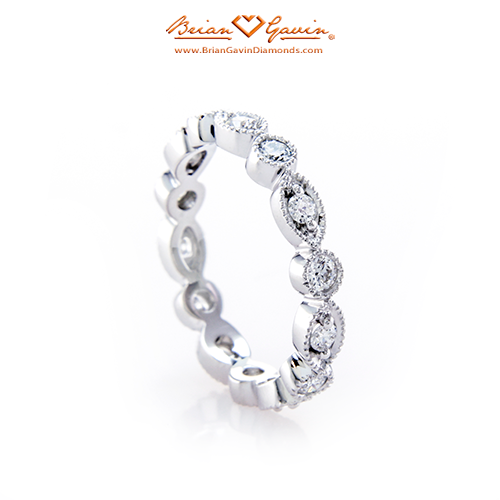 Alternating eternity band with milgrain featuring 8 x .02ct and 8 x