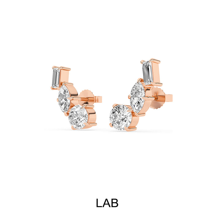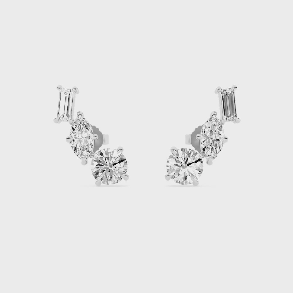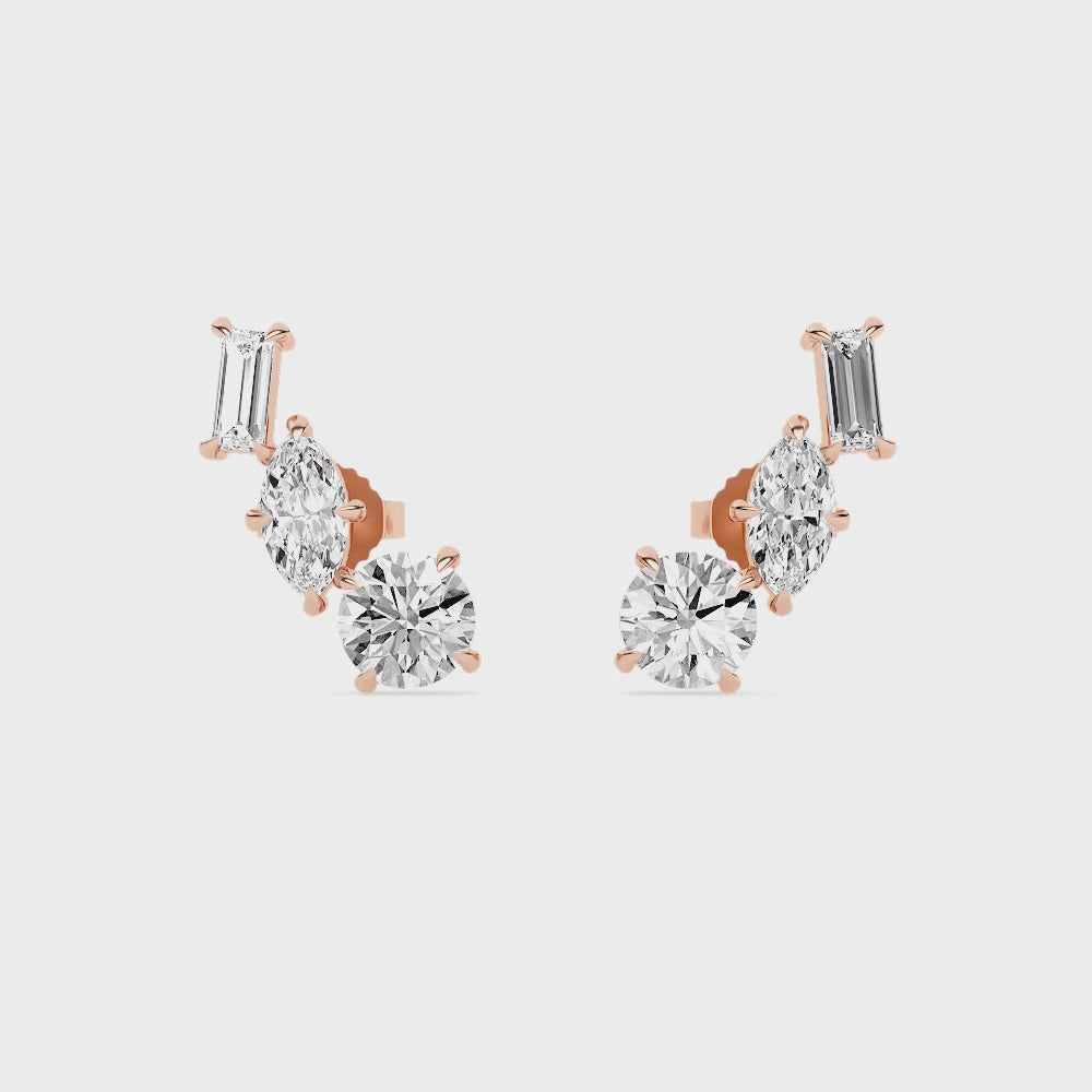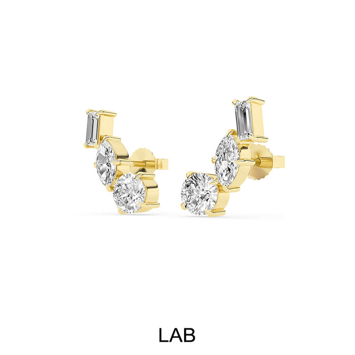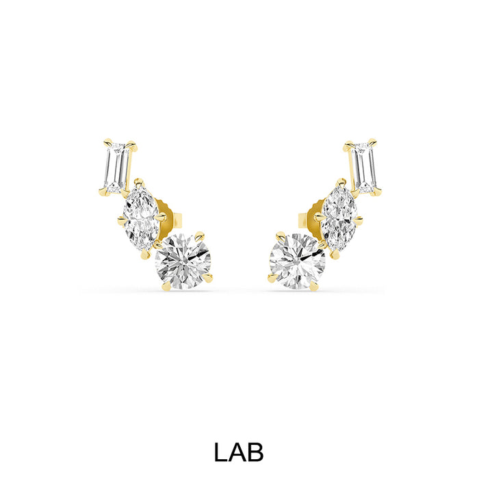 14K Gold Multi Shaped Lab Grown Diamond Ear Climber Earrings. These F/G VS Multi Shaped Diamond Earrings are approximately 1 7/8ct. These ear climber earrings come with friction backs.