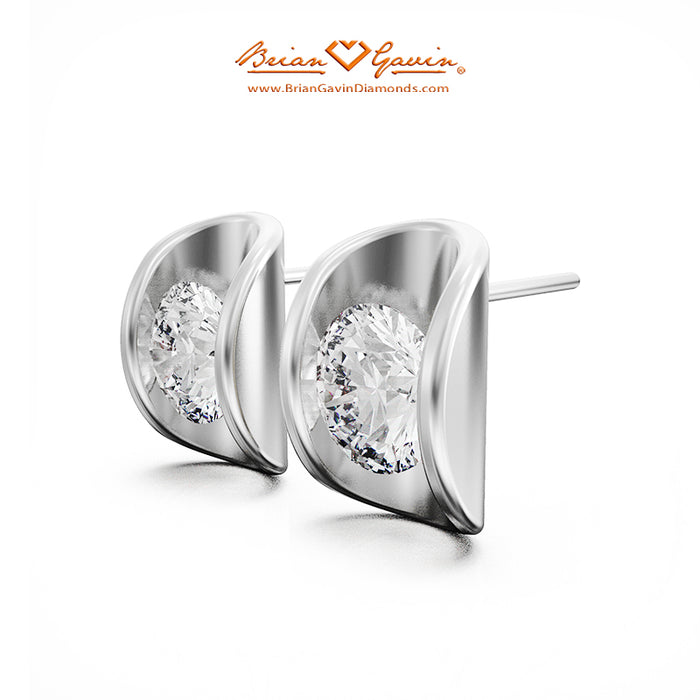 Straight channel set curved solitaire earrings comes with friction posts and backs.  Featured in the pictures is a 1ct solitaire. All measurements will vary based on the diamond size. Price is for setting only. Add $150 for diamonds larger than 2 carats. Select your diamonds from our extensive online inventory.