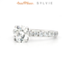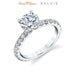 Designed By a Woman, for a Woman", the Querida classic wide band engagement ring from the Sylvie Collection, features 0.75 ctw diamond melee cascading down each side of the band. Also available in eternity style, platinum, as well as 14k, 18k white, rose or yellow gold metals. Available for any shape center stone. Price is for setting only and does not include center stone. Add $150 for diamonds larger than 2 carats. Please note that for ring sizes above size 8, additional fees will apply. This is due to the increase in diamonds and metal required. Please contact us for larger ring sizes. Select your diamond from our extensive online diamond inventory.