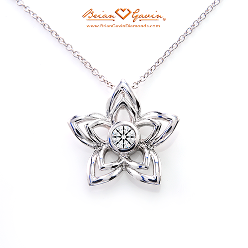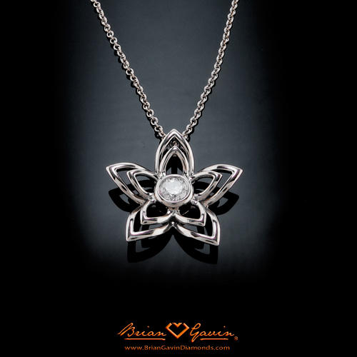 Choose the Brian Gavin Signature Flower Pendant that is best for you, and match it with a pair of earrings. The Large Pendant features an approximate 18mm diameter and includes a 0.10ct F/G VS Brian Gavin Signature melee. Each pendant comes on a 1mm chain with our signature lobster clasp.