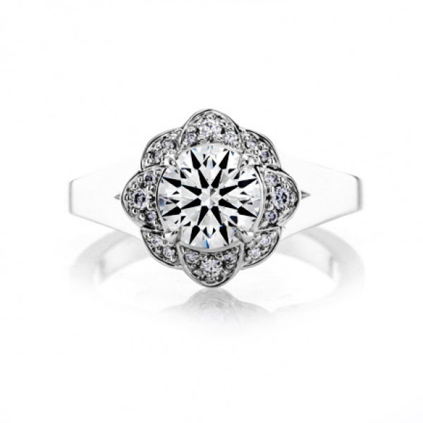 The displayed ring price includes only the setting of the piece, and the ring here is shown with a Hearts and Arrows center stone. Select your ideal diamond from our large online catalogue to create your unique and special piece.