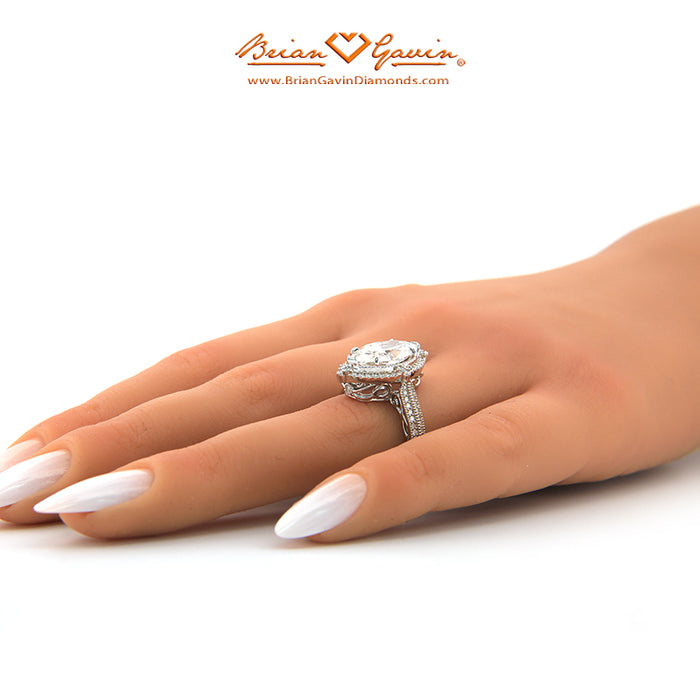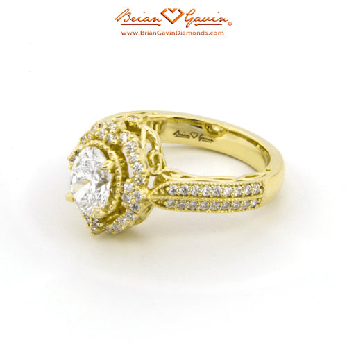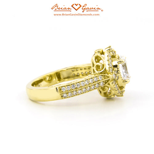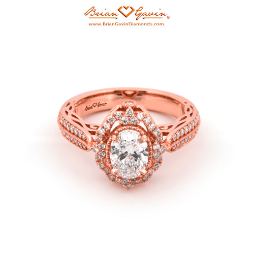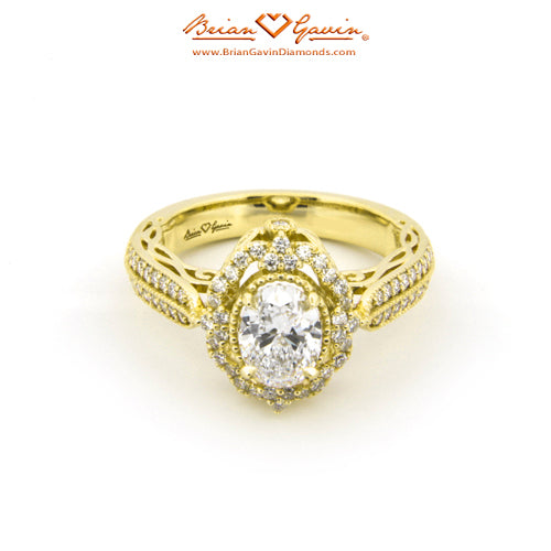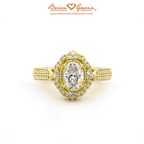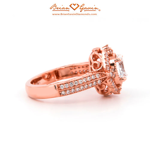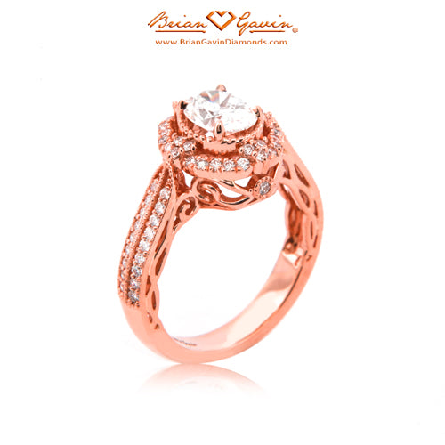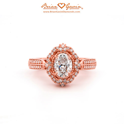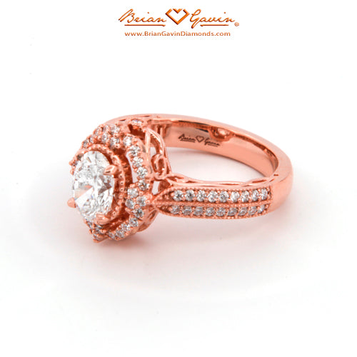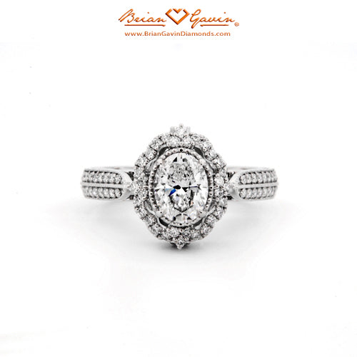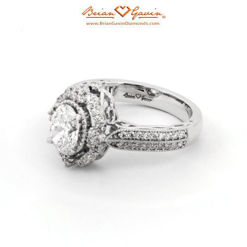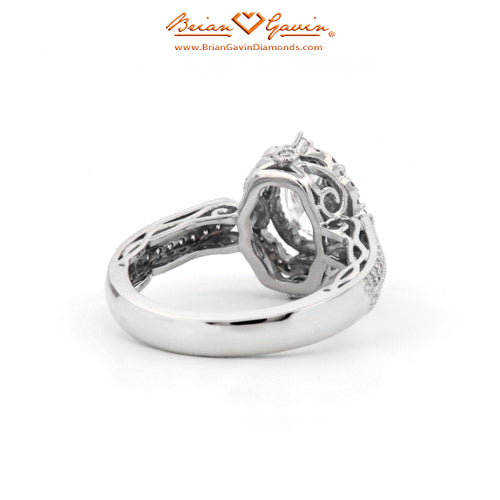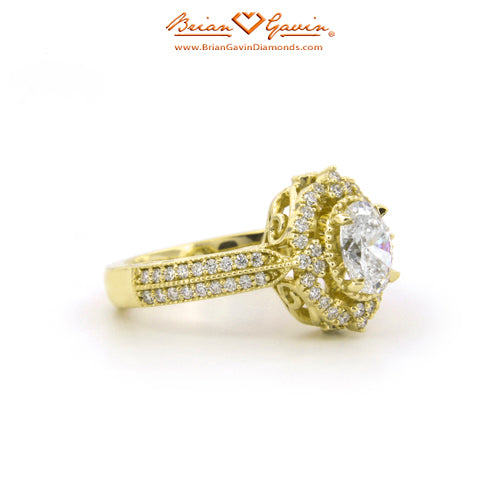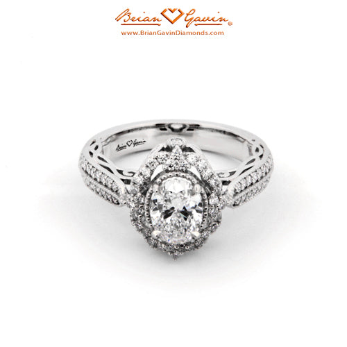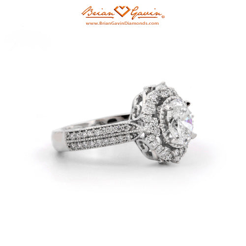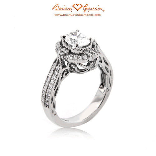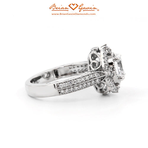 Diamond Antique Halo Engagement ring featuring Approx. 0.40ctw F/G VS Brian Gavin Signature Hearts And Arrows Diamond Melee In The Halo And 1/2 The Way Around The Shank. Price is for setting only. Add $150 for diamonds larger than 2 carats. Please note that for ring sizes above size 8, additional fees will apply. This is due to the increase in diamonds and metal required. Please contact us for larger ring sizes. Please select your center stone from our extensive online inventory.