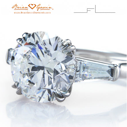 Graciosa (Latin for graceful). This is not your average Three Stone Ring. Handmade prongs and stone seats are forged from platinum wire and are meticulously built around your diamonds for a bespoke fit. This gives the ring a pristine look and finish that no casting process can achieve. The listed price is a starting price as each ring will differ according to the center and matched side stones purchased. Stone shown is a custom cut Black by Brian Gavin 4.00ct E VVS1. This item is made to order and is a final sale. Please note that for ring sizes above size 8, additional fees will apply. This is due to the increase in diamonds and metal required. Please contact us for larger ring sizes. Select your center stone from our extensive online inventory. Price includes side stones.