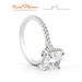 This is not your average Solitaire. Four Handmade prongs and stone seats are forged from platinum wire and are meticulously built around your stone for a bespoke fit giving it a pristine look and finish that no casting process can achieve. Center stone shown is a 3.02 F VS1 Cushion. This item is made to order and is a final sale. Price is for setting only for diamonds up to 3 carats. Inquire about pricing for diamonds larger than 3 carats. Please note that for ring sizes above size 8, additional fees will apply. This is due to the increase in diamonds and metal required. Please contact us for larger ring sizes. Select your diamond from our extensive online inventory.