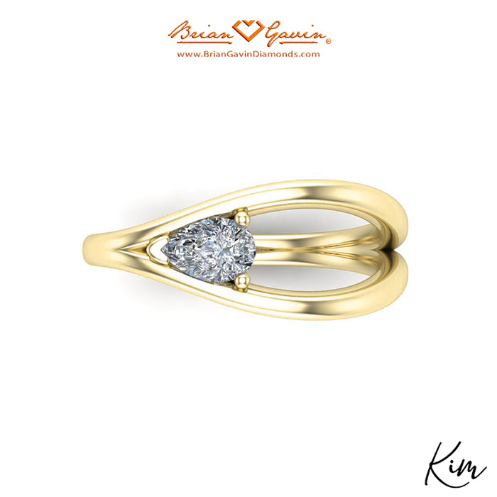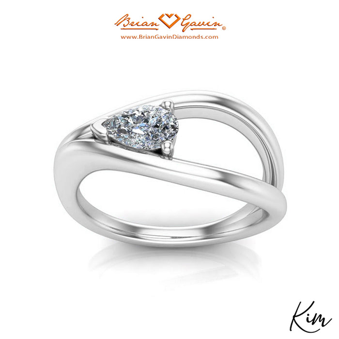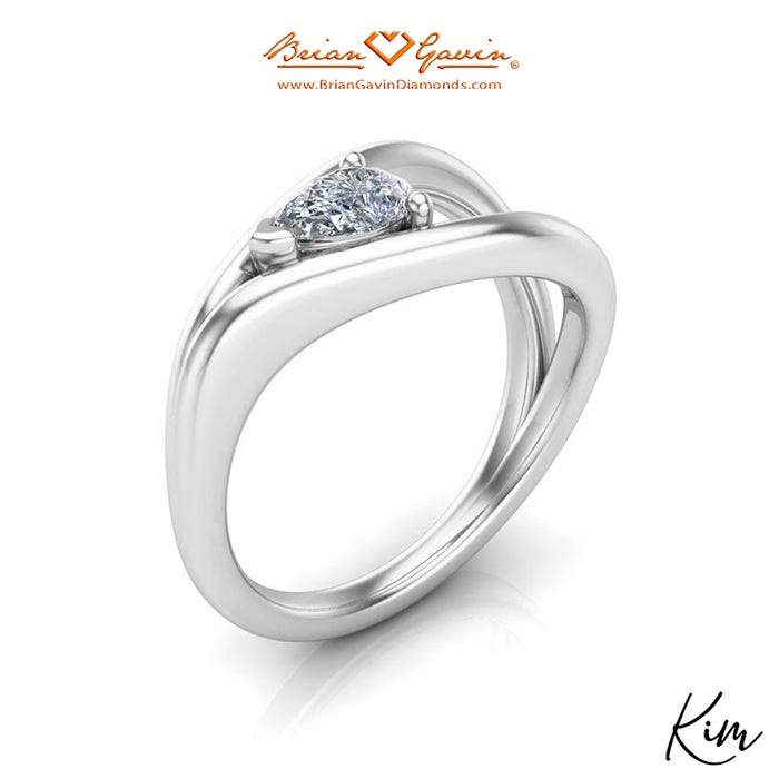 The AMARA ring embodies eternal love and timeless devotion. With a gracefully curved split shank, it symbolizes the harmonious union of two souls. A horizontally set pear-cut Brian Gavin gemstone represents teardrops of joy and shared happiness. This sophisticated ring is a lasting symbol of eternal love, perfect for a commitment that lasts forever.
