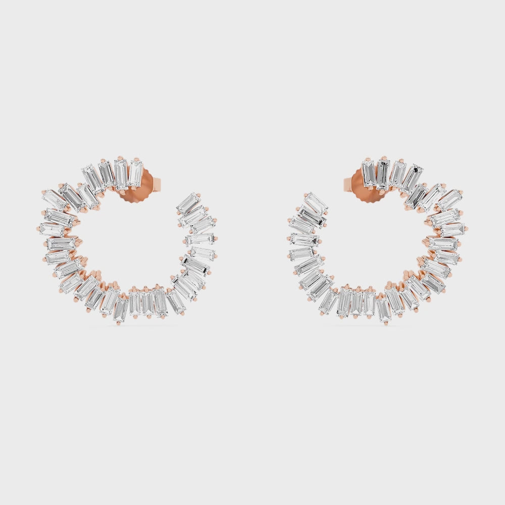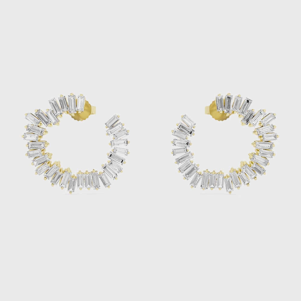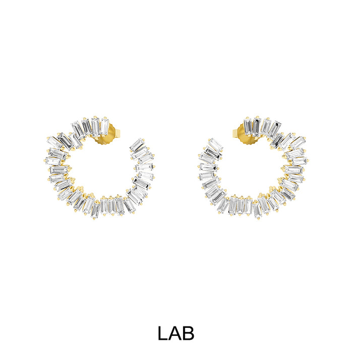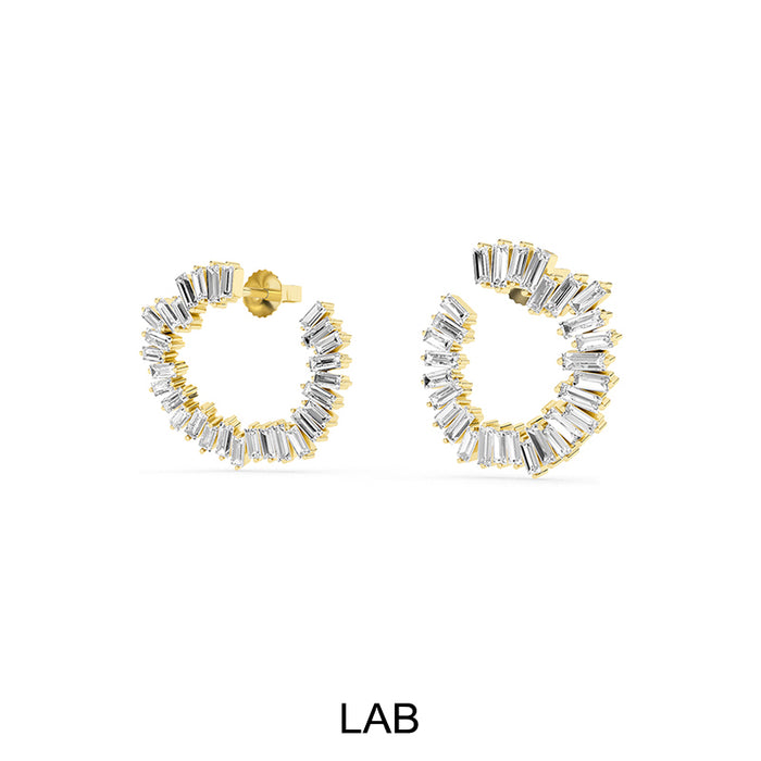 14K Gold Baguette Shaped Lab Grown Diamond Ear Climber Earrings. These F/G VS Multi Shaped Diamond Earrings are approximately 2.5ct. These ear climber earrings come with friction backs.