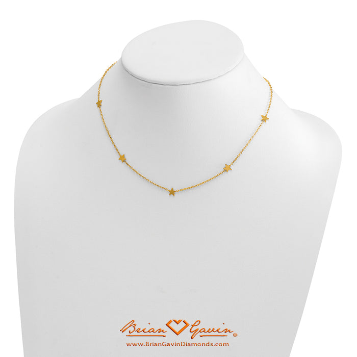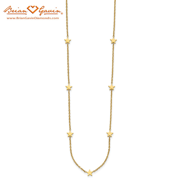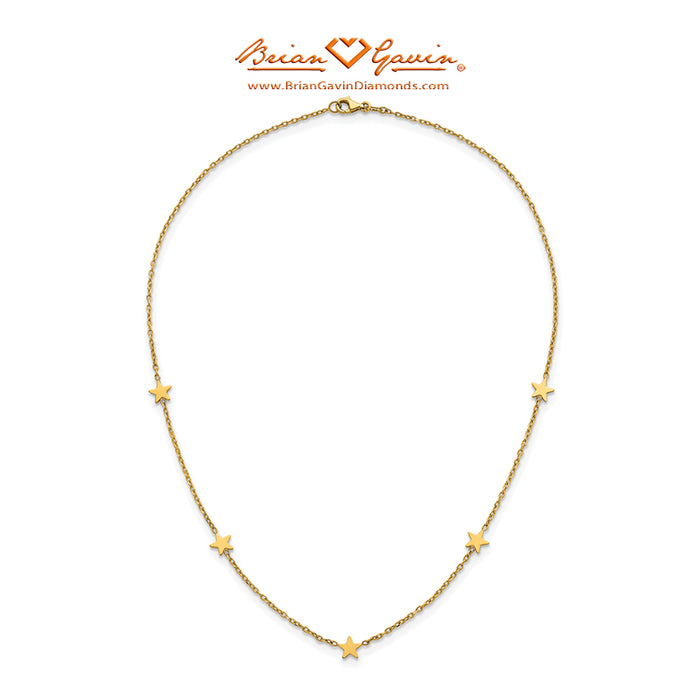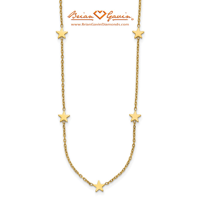 This Five Star Station Necklace is 16 inches in length and includes a 2 inch extender with a lobster clasp to make the necklace 18 inches. The chain is approximately 1.5mm in width. The stars measure approximately 6mm. Italian Made.