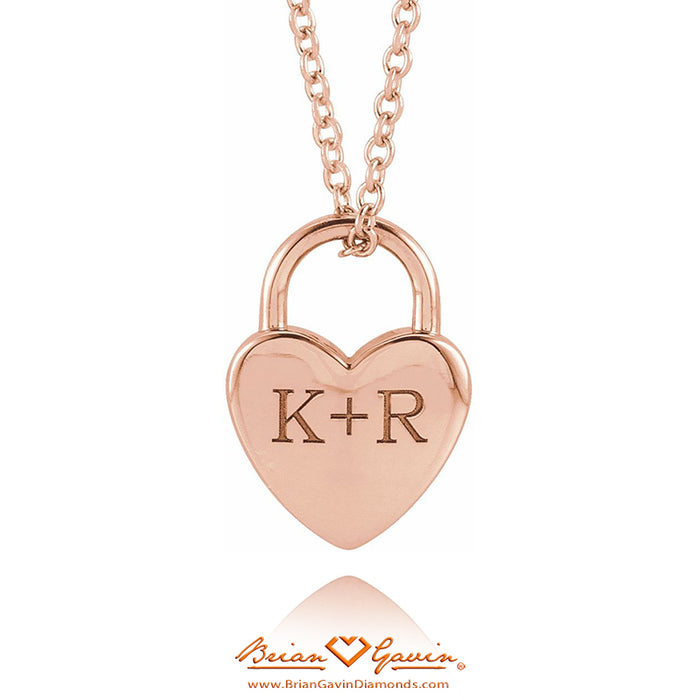 This 14K Heart Lock Necklace comes on a 18 inch 1mm cable chain with a spring clasp and a jump ring at 16 inches. The pendant measures approximately 12.1 x 8.6mm. Engraving options are available. 3 characters is the maximum allowed.