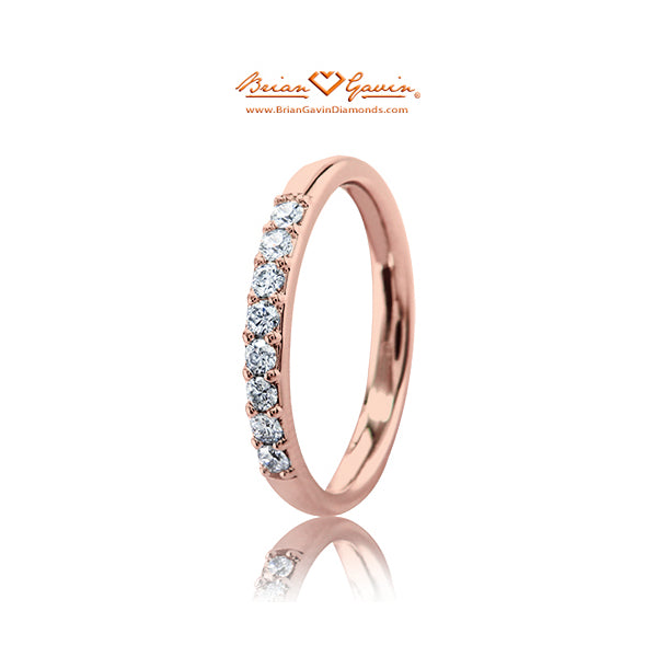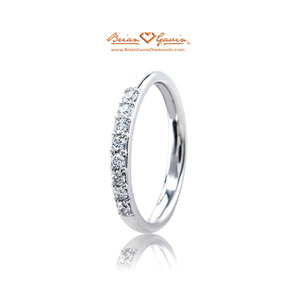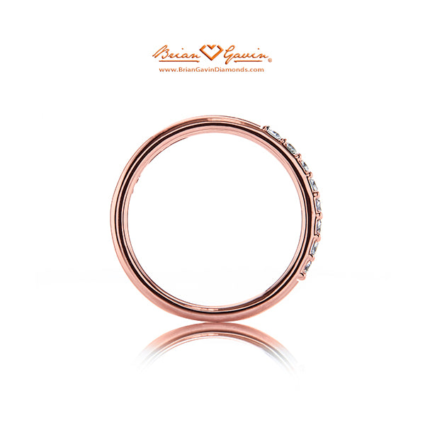 Matching shared prong diamond band to the Sprinkling Novela engagement ring, this designer diamond band features 8 x 1.6mm F/G VS Brian Gavin Signature hearts and arrows diamond melee (approximately 0.13 ctw). Price is for up to size 10. Please call for pricing for larger sizes. Matching engagement ring is item number 7128