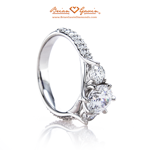 A designer channel pave solitaire w/ approx. 0.25 ctw F/G VS Brian Gavin Signature H&A melee diamonds. Soft sweeping lines lead to eye popping ...
