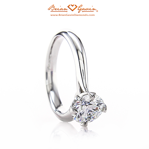 A designer six prong solitaire focusing on minimalism with small flourishes. Soft sweeping lines lead to eye popping diamonds, cut for optimum spar...