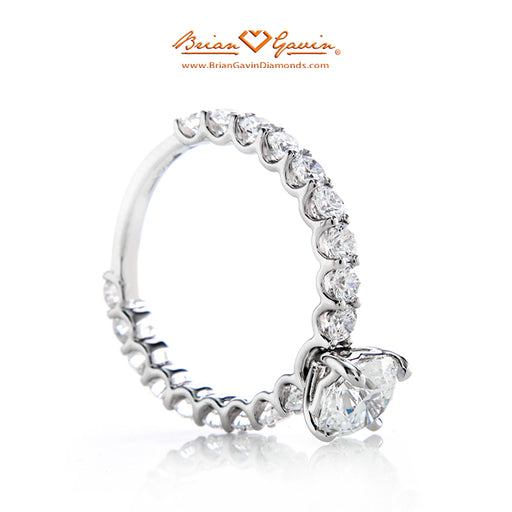 Classic Half round shank with a 4 prong Eternal Grace basket featuring a row of F/G VS Brian Gavin Signature Melee around the basket just under the...