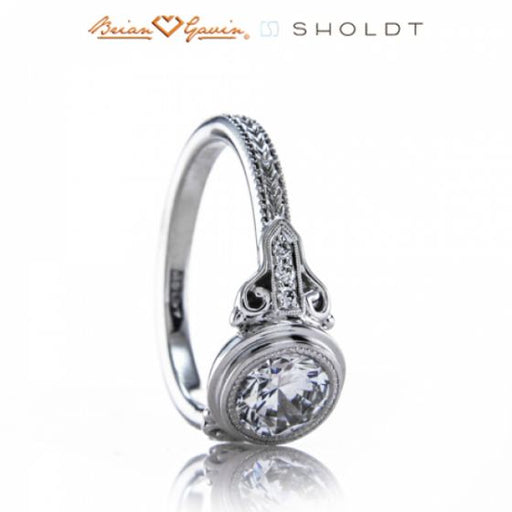 Solitaire with Truth head. Includes 2 x .10 ct F/G VS Brian Gavin Signature melee. Matching band is SKU 5456. Price is for setting only for diamond...