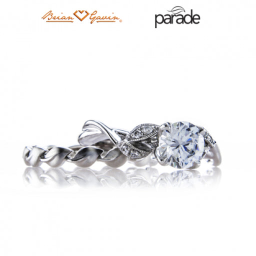 Parade™ Intertwined satin finished leaves and bands of sparkling white diamonds climb towards a brilliant center stone set in the LYRIA Signature C...