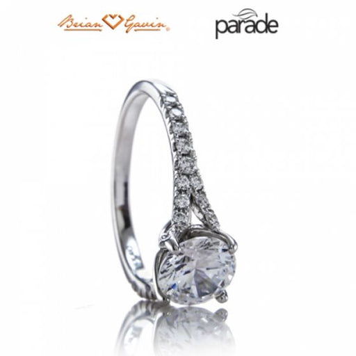 Parade™ A split diamond shank leads to a brilliant round center set in the Lyria signature crown in this timeless classic. Featuring 22 round cut d...