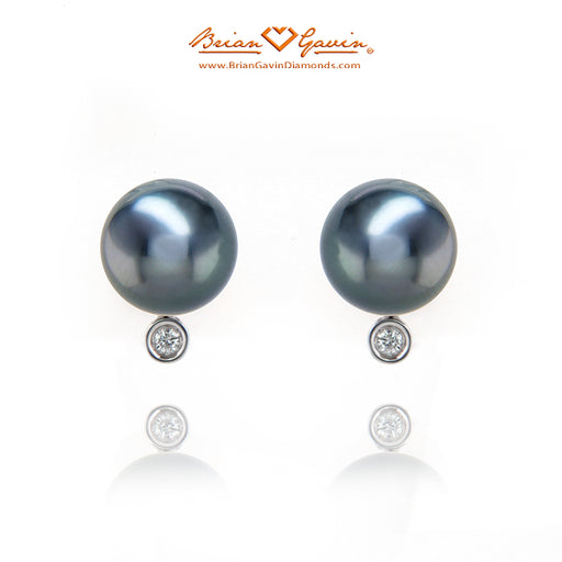 These 18K White Gold Tahitian Pearl Earrings feature 9.0-10.0mm pearls. The earrings feature a post and friction backs.