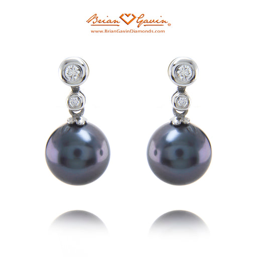 These 18K White Gold Tahitian Pearl and Diamond Drop Earrings feature 8.5-9.0mm pearls with 0.08ct of diamonds. The earrings feature a post and fr...