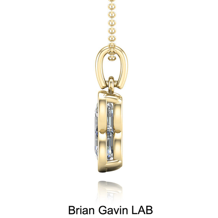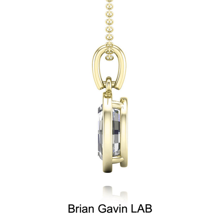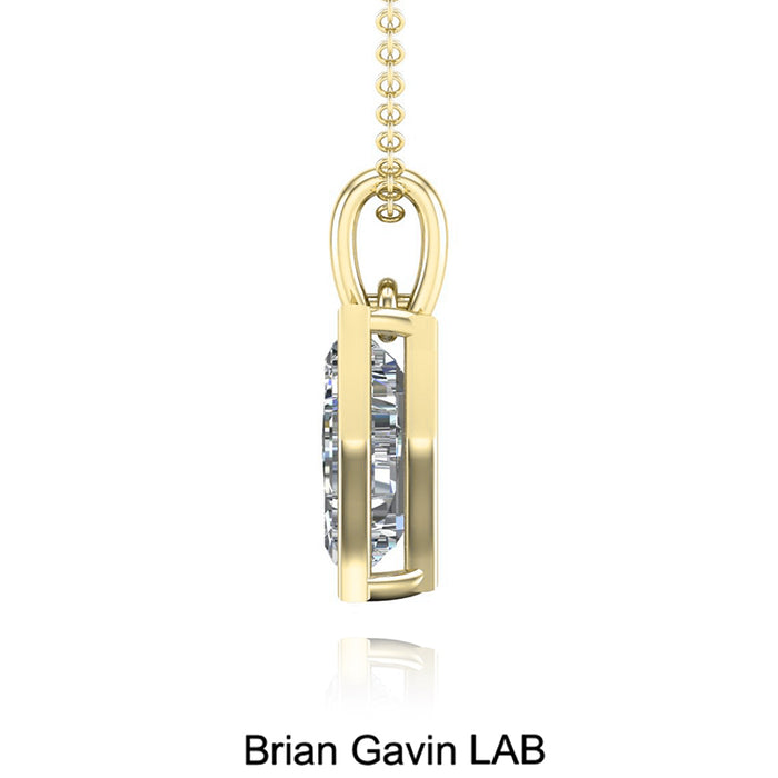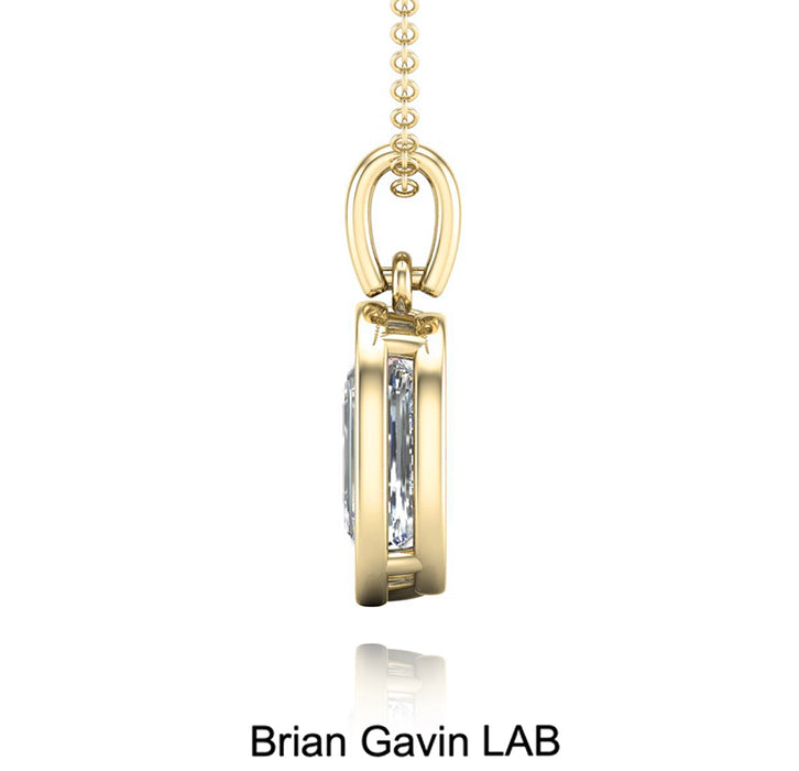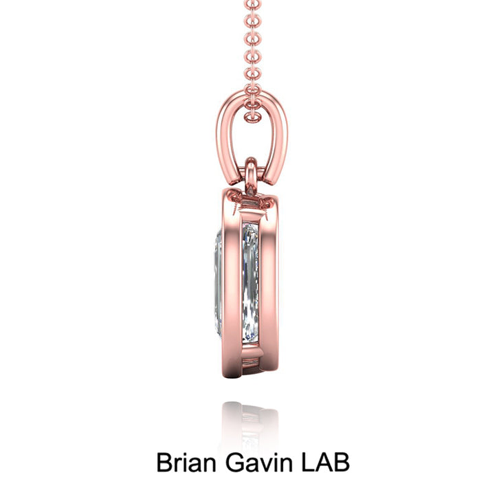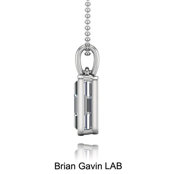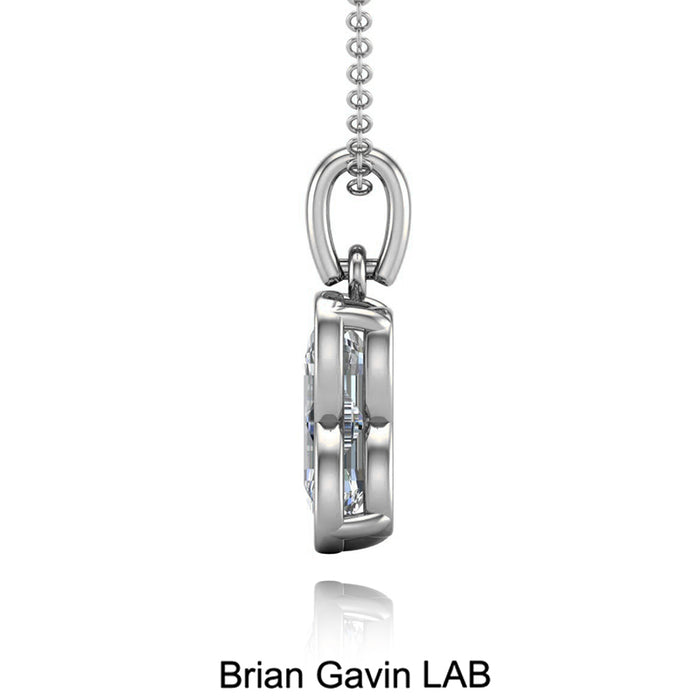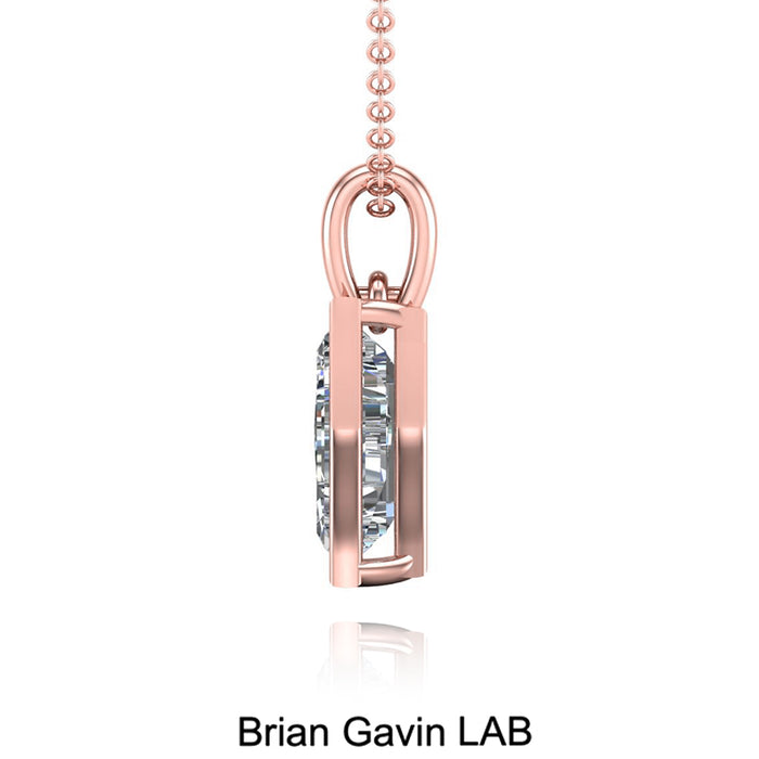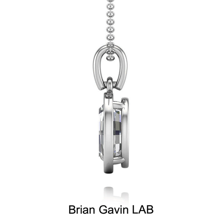 Each diamond is approximately 1ct each and F VS1 in quality. The pendant is bezel set and comes with a 16 inch cable chain, featuring a Signature Brian Gavin lobster clasp, that slides thru the bail.