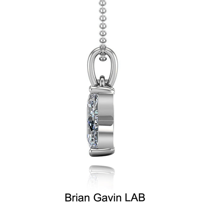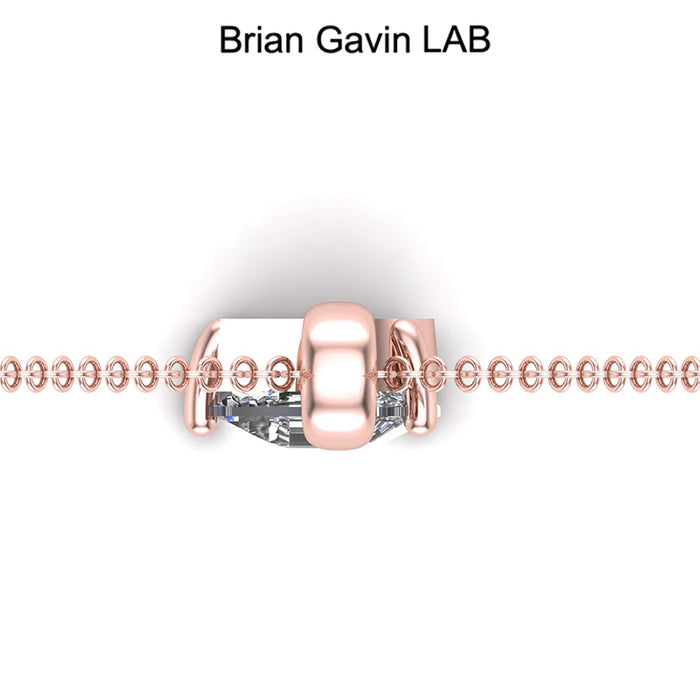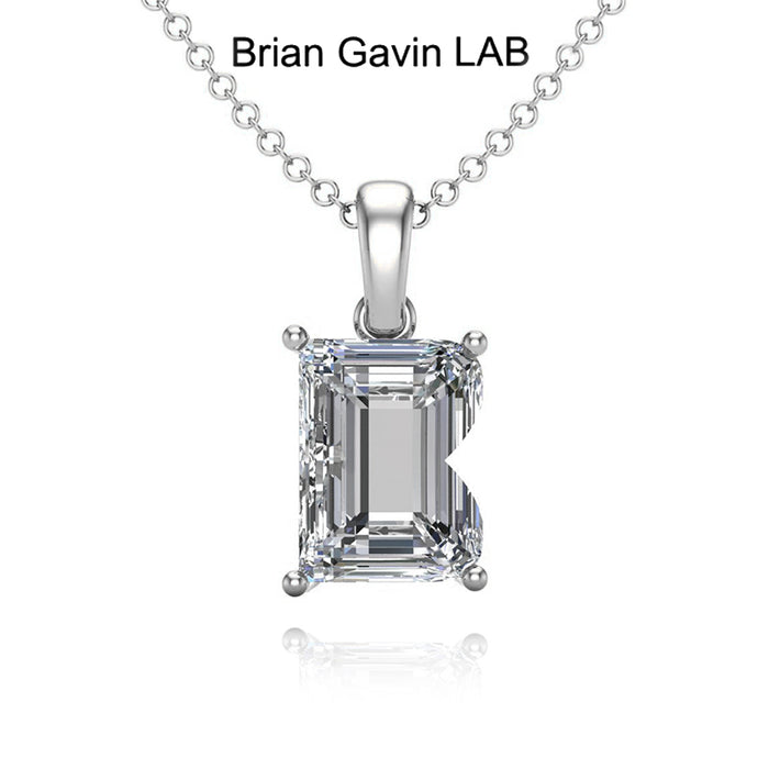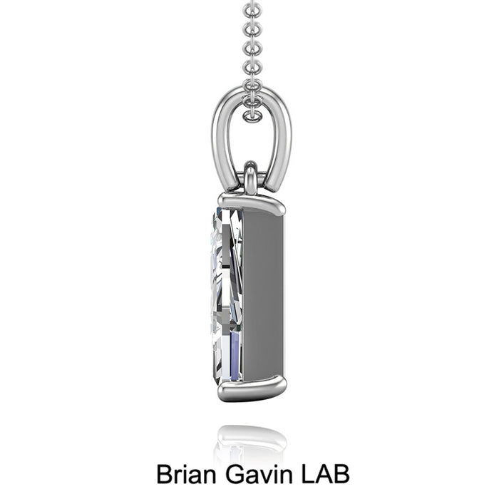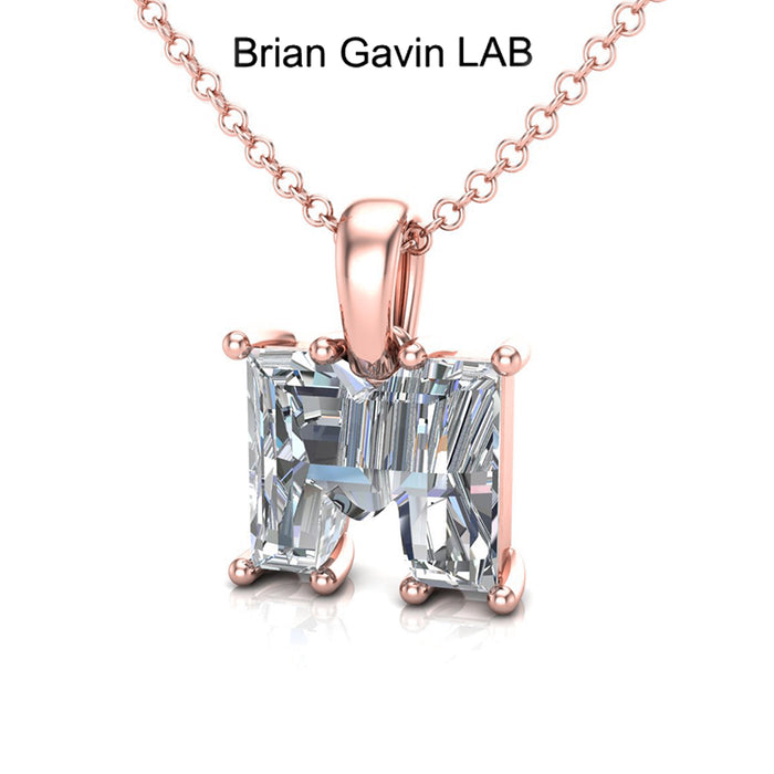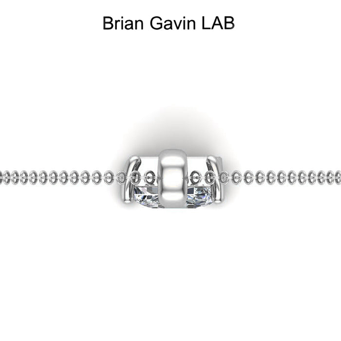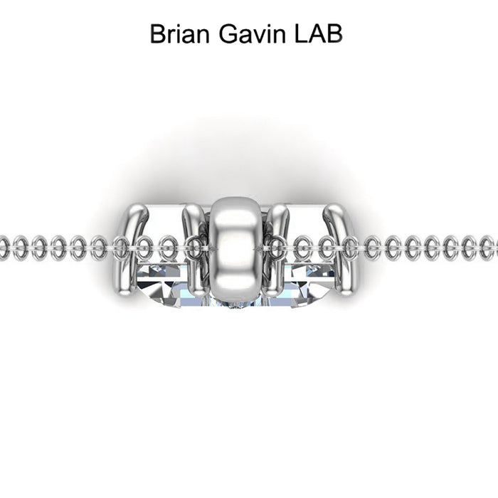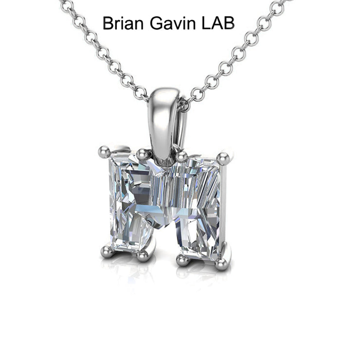 Each diamond is approximately 1ct each and F VS1 in quality. The pendant comes with rounded prongs and it is attached to a 16 inch cable chain, featuring a Signature Brian Gavin lobster clasp, that slides thru the bail.