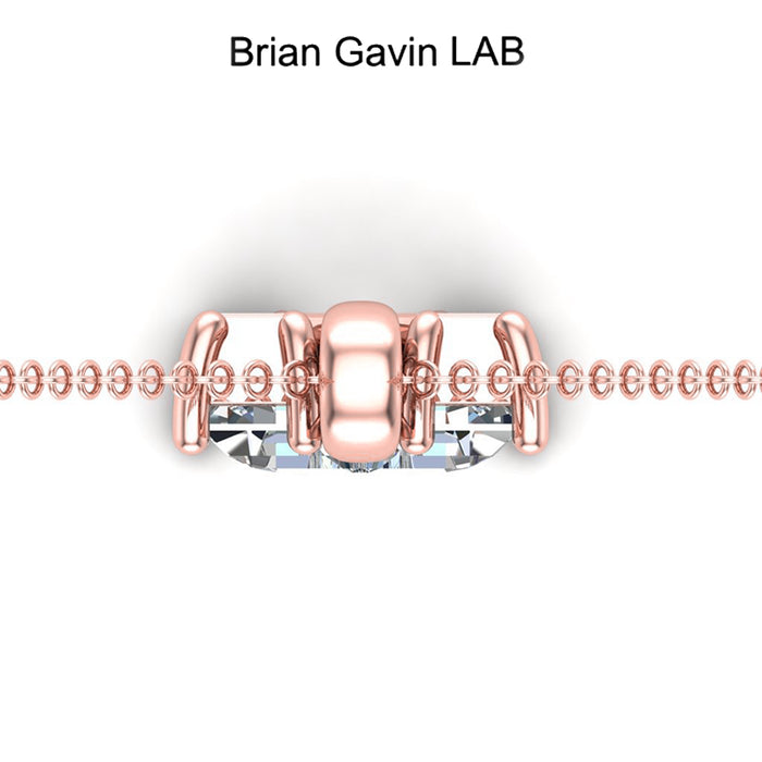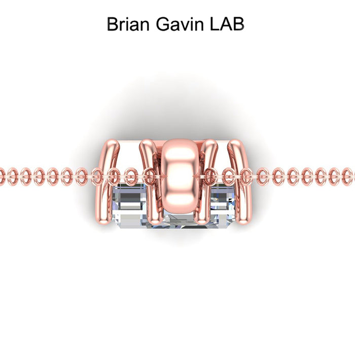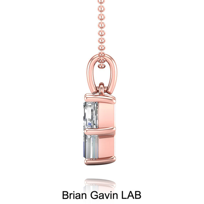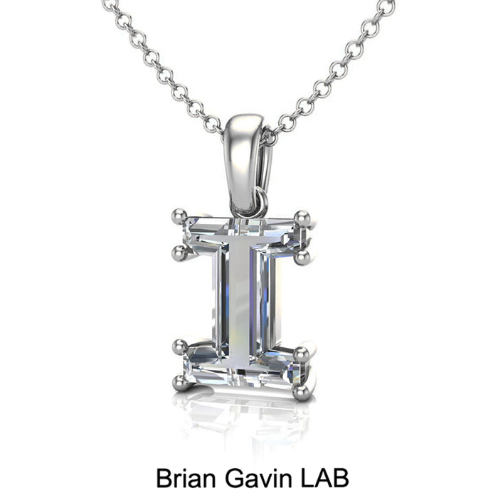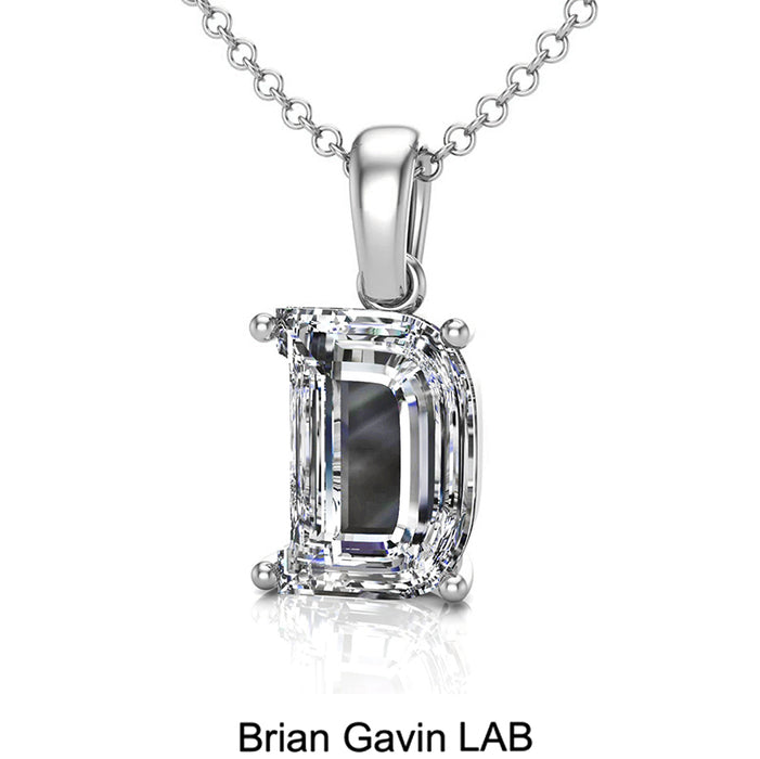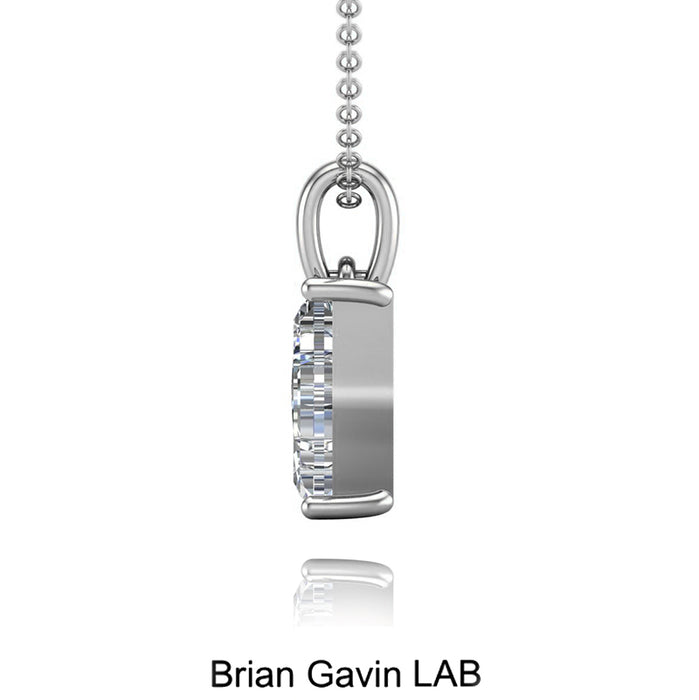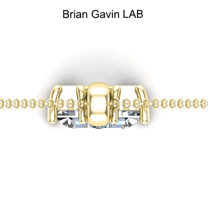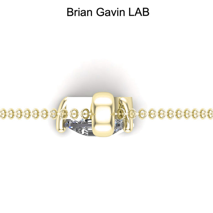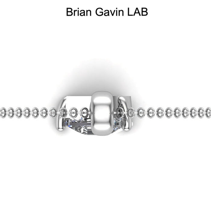 Each diamond is approximately 1ct each and F VS1 in quality. The pendant comes with rounded prongs and it is attached to a 16 inch cable chain, featuring a Signature Brian Gavin lobster clasp, that slides thru the bail.