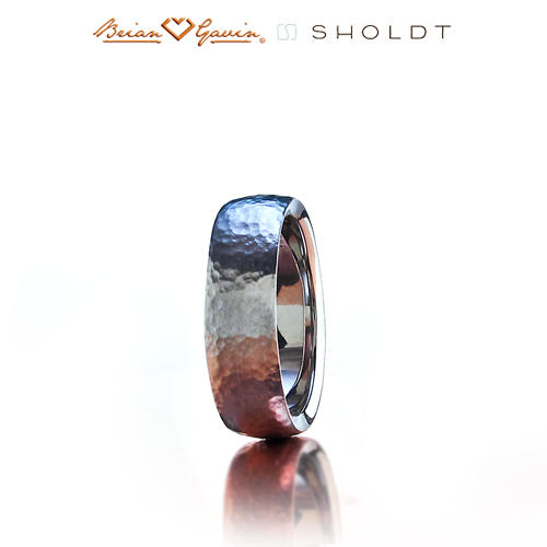 6.5 mm wide men's band with hammered finish. Any finish (bright, brushed, sandblast, "german finish", etc.) can be applied to any ring. Men's band may be ordered in different mm widths. Please call for pricing.