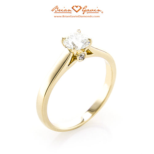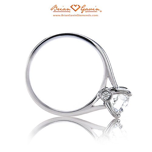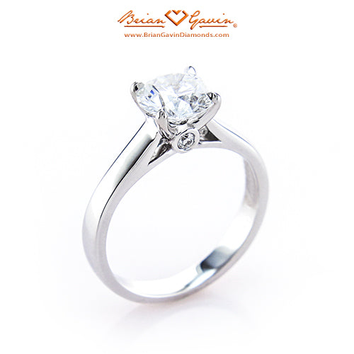 Elegant Cathedral Style solitaire featuring 2 x 1.7mm F/G VS Brian Gavin Signature melee. Price is for setting only for Round stones ONLY up to 2 carats. Add $150 for diamonds larger than 2 carats.  Pricing is good up to a ring size 8.0. Select your diamond from our extensive online catalog. Hand shot is with at 0.50 carat diamond.