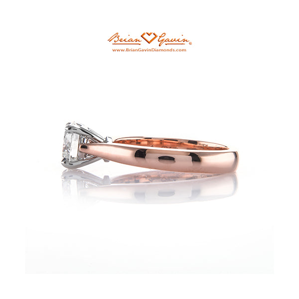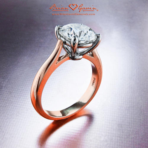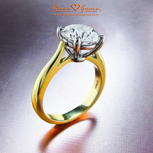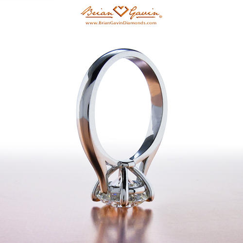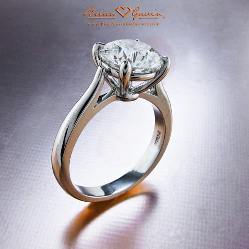 A flowing cathedral style shank tapers up to meet with a customized 4 prong head with claw prongs. Price is for setting only for diamonds up to 2 carats. Add $150 for diamonds larger than 2 carats. Select your diamond from our extensive online Brian Gavin diamond inventory.