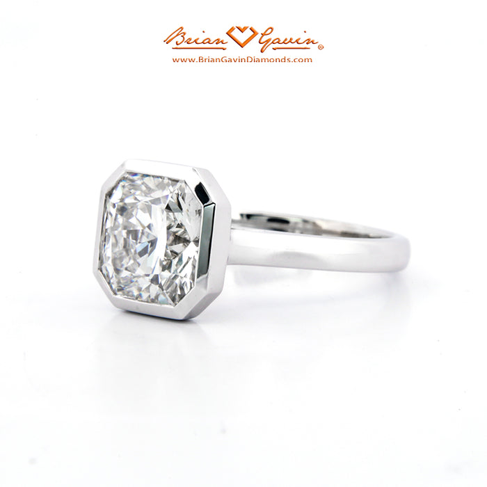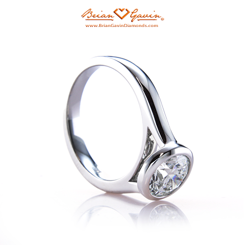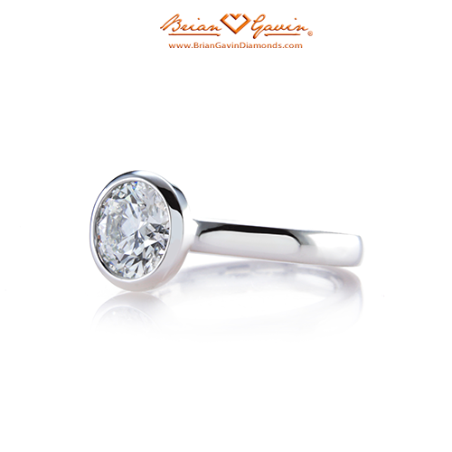 Full bezel solitaire for round or other shape diamonds. Custom made to the size and shape of any diamond or colored center stone. This item is made to order and is a final sale. Price is for setting only. Add $150 for diamonds larger than 2 carats. Select your diamond from our extensive online diamond inventory.