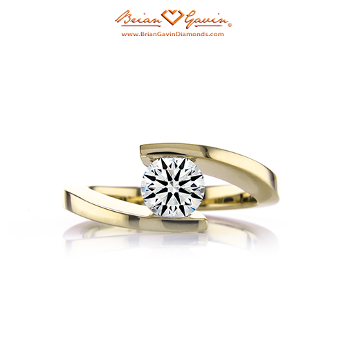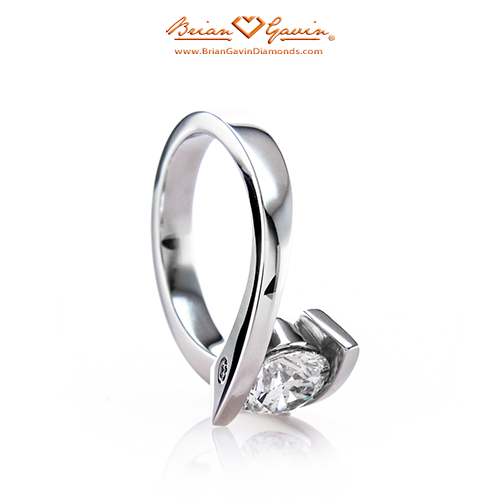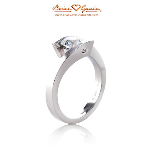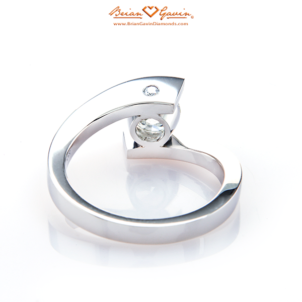 Thin and tall tension design with two hammer set surprise diamonds (2 x 0.015 ct F/G VS Brian Gavin Signature melee) and tapered shank. Price is for round diamonds under 2 carats. Add $150 for diamonds larger than 2 carats. Call for pricing for shapes other than round. Price does not include center stone. Select your diamond from our extensive online diamond inventory. This setting is made to order and a final sale.