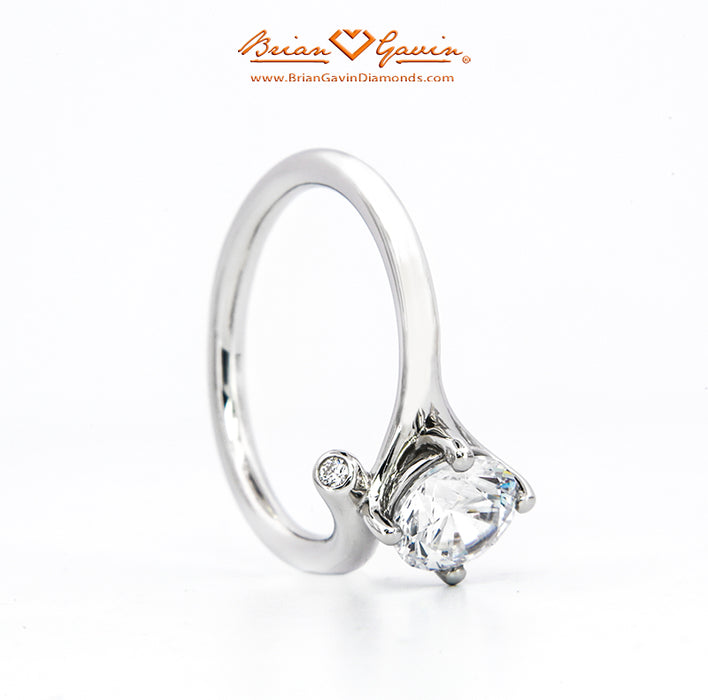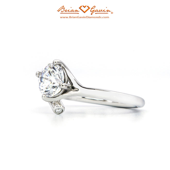 4 prong solitiare featuring a 1.5mm F/G VS Brian Gavin Signature melee bezel set into the end of the crossover bar. Price is for setting only. Add $150 for diamonds larger than 2 carats. Select your diamonds from our extensive online inventory.