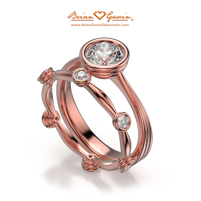 Highly detailed Beehive-like bezel set solitaire with a tapered shank. Price is for setting only. Add $150 for diamonds larger than 2 carats. Select your diamonds from our extensive online inventory. Matching band is product #KN7835