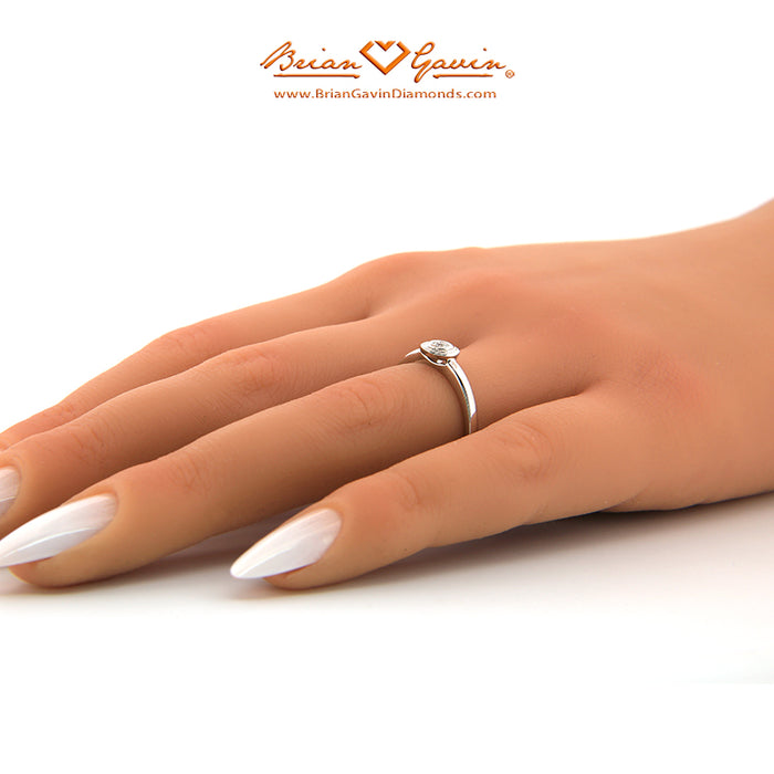 Layered halo bezel-set mini solitaire featuring 1 x 2.4mm F/G VS Brian Gavin Signature melee.
