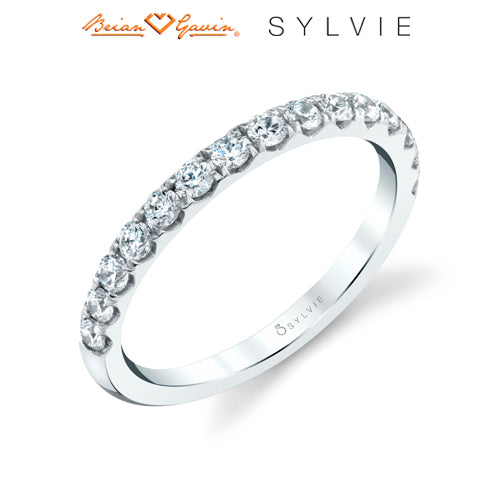 This classic thick wedding band features 0.47 carats of shimmering diamonds down the shank. Pair it with its matching thick engagement ring, product number 7475, for an elegant and glamorous wedding set.