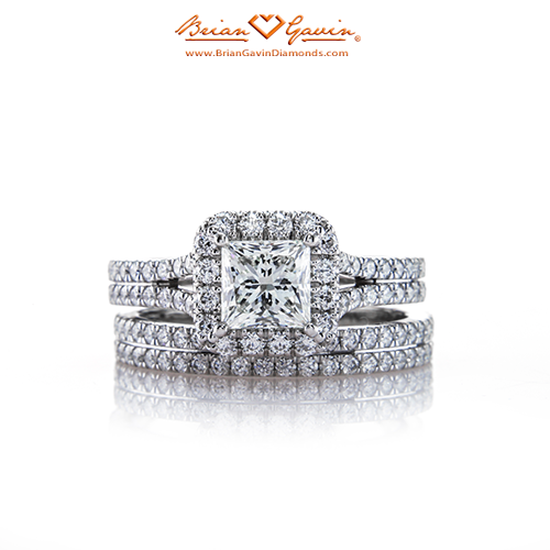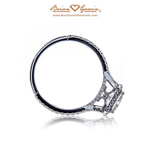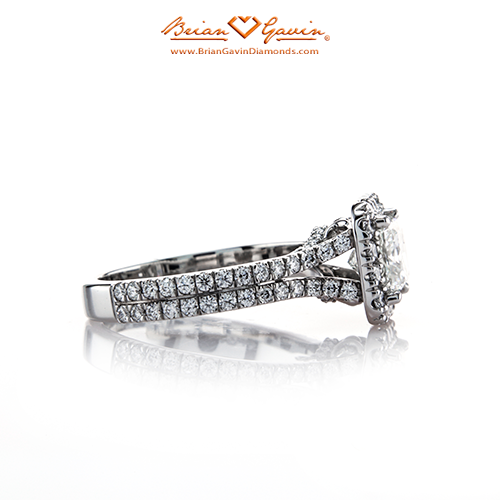 Custom Split Shank halo setting created for our customer Ashley, set w/ approx. 0.80 ctw F/G VS Brian Gavin Signature diamond melee. Each setting is created to accommodate the exact measurements of your center stone and your ring size and is a final sale. Price is for setting only for diamonds up to 2 carats. Add $150 for diamonds larger than 2 carats. Please note that for ring sizes above size 8, additional fees will apply. This is due to the increase in diamonds and metal required. Please contact us for larger ring sizes. Select your center stone from our extensive online diamond inventory. Matching band is Product ID# 5836P