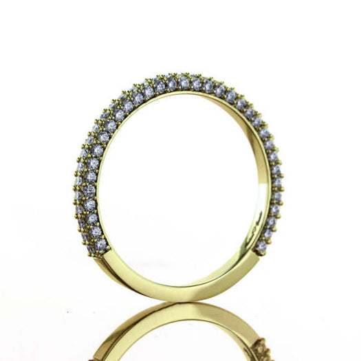 3/4 eternity three sided domed pave band with F/G VS Brian Gavin Signature hearts and arrows diamond melee. Band matches engagement ring #5497, The "Belle" Halo Micro Pave