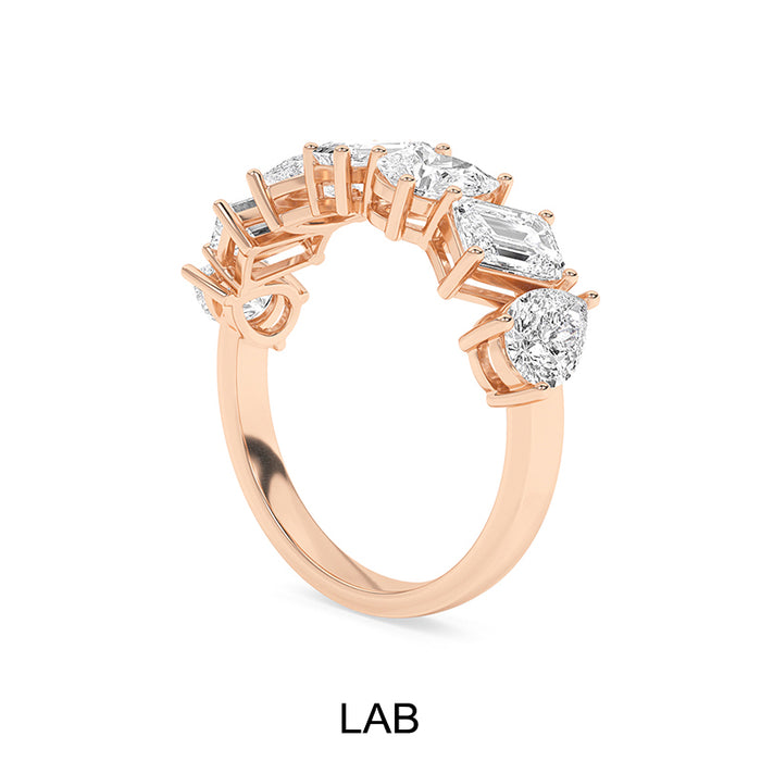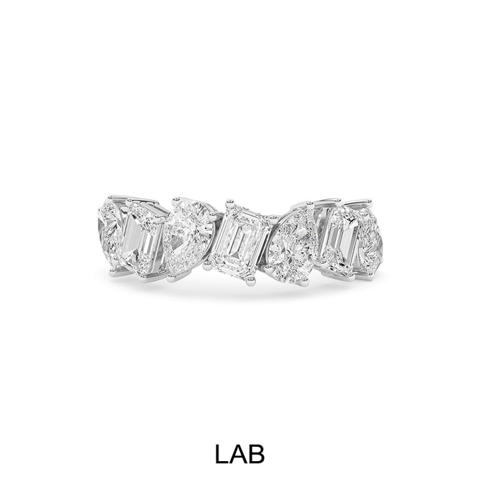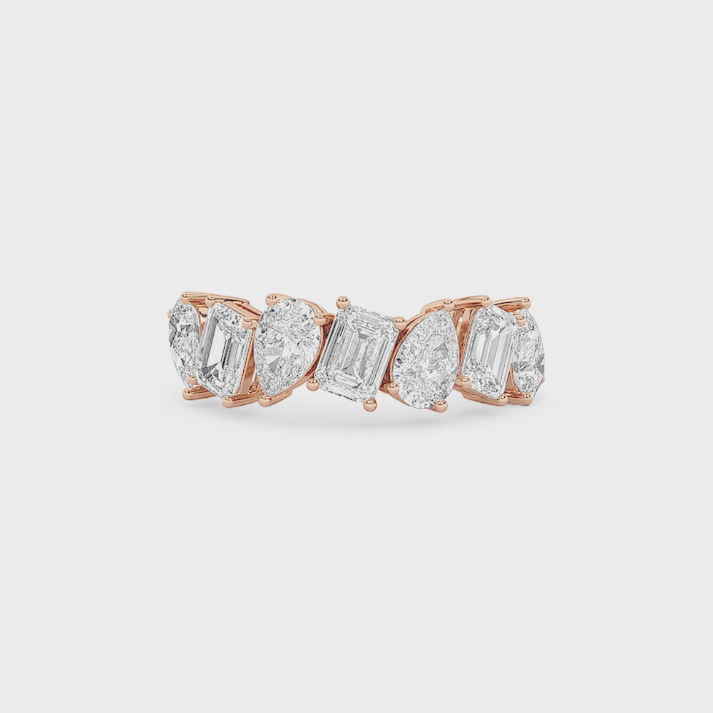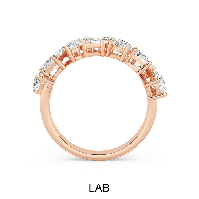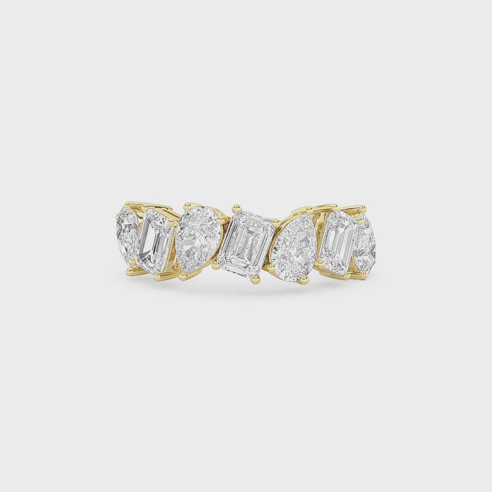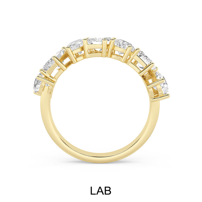 14K Gold Half Eternity Emerald and Pear Shaped Lab Grown Diamond Band. The band is set with 3 Emerald and 4 Pear Shaped F/G VS+ LAB Diamonds totaling approximately 2.0cts. This ring comes in sizes 4.0-9.0.