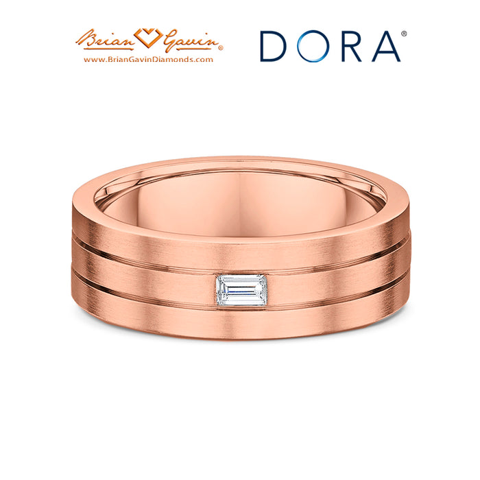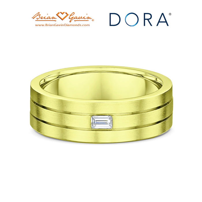 7.0 mm wide Gold and Diamond Band is available in 14K or 18K. Band is set with 1 x 0.12ct G/H VS Straight Baguette.