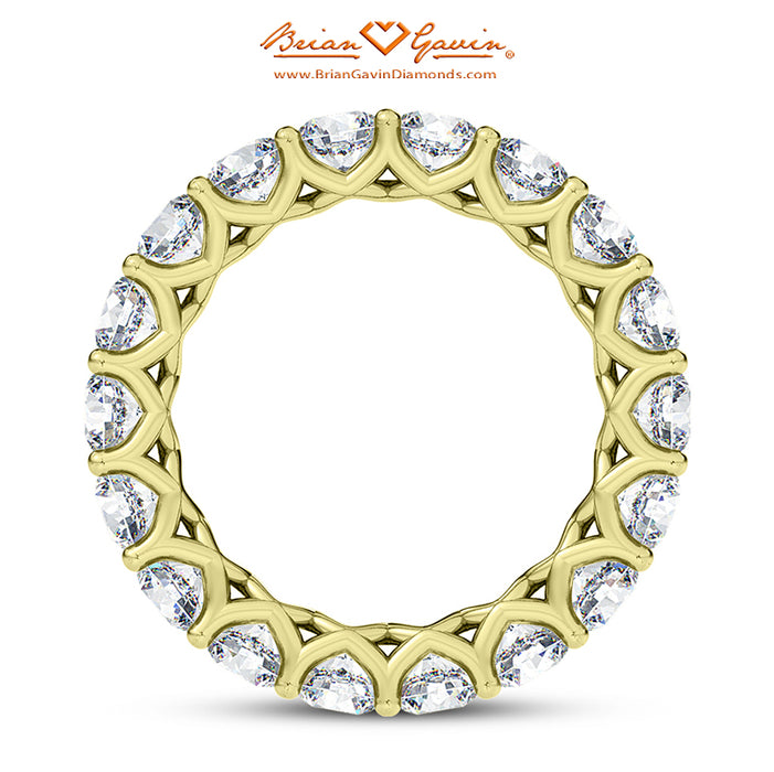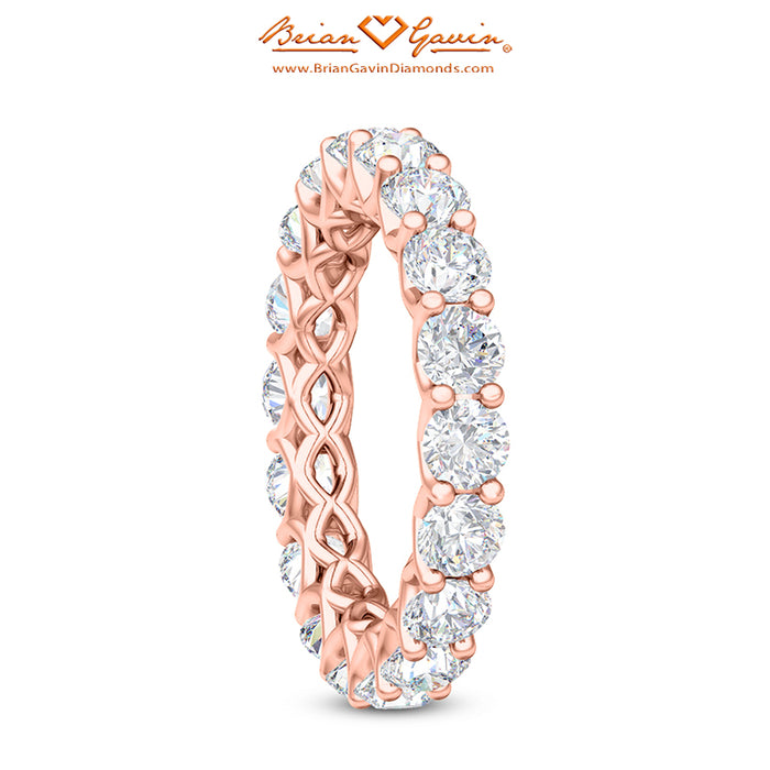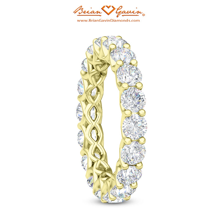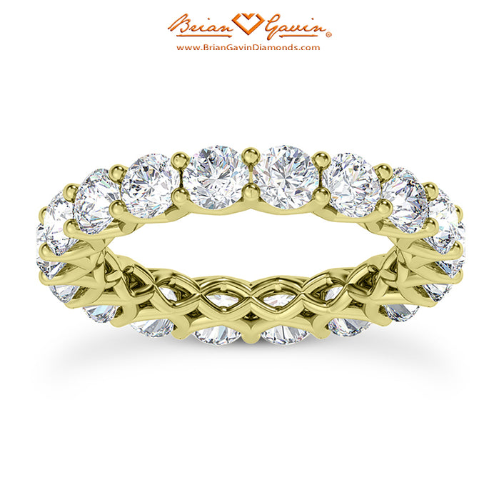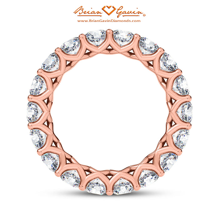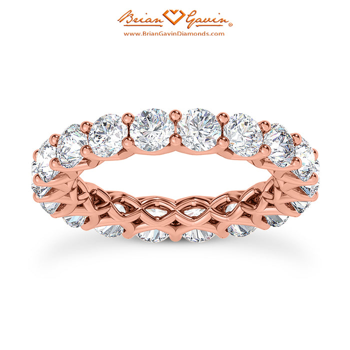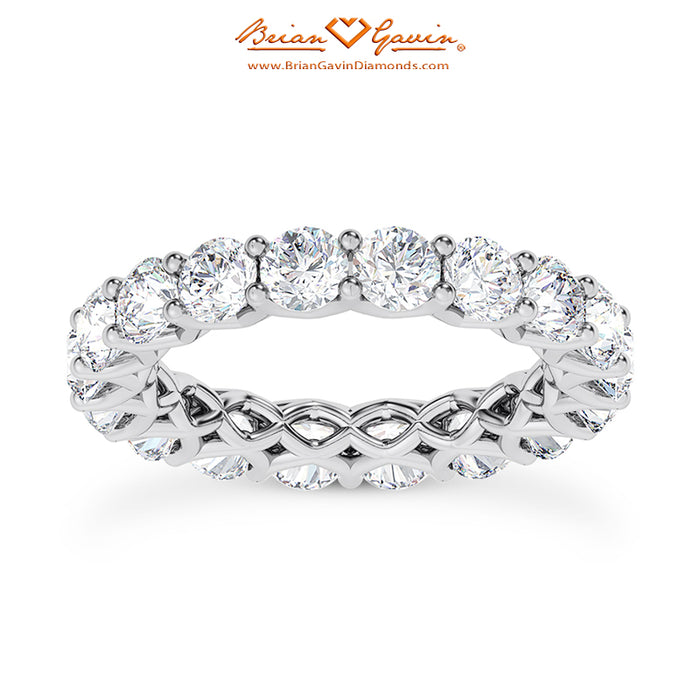 Round Diamond Eternity Band. This band is set with 3.8mm E/F VS LAB Diamonds. Carat weight and number of stones will vary based on ring size. Listed price is for up to size 7. Request quote for larger finger size. This item cannot be resized and is a final sale.